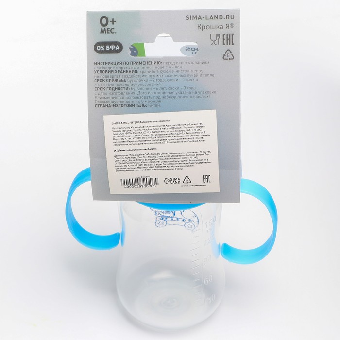 Бутылочка для кормления Крошка Я, классическое горло, с ручками, от 0 мес., 150 мл., МИКС — Характеристики