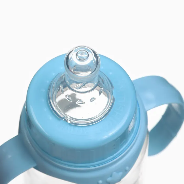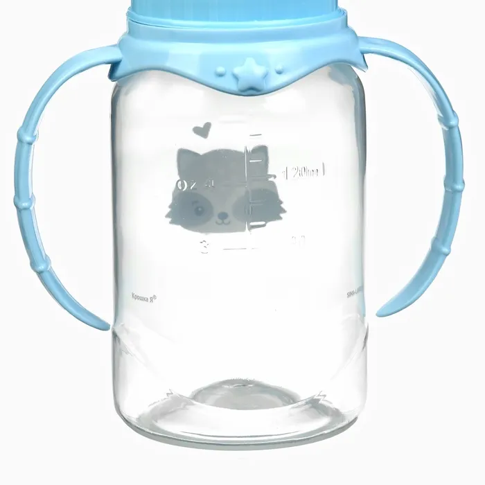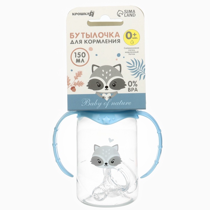 Бутылочка для кормления Крошка Я «Малыш енот» от 0 мес., 150 мл, цилиндр, с ручками, голубая — Характеристики