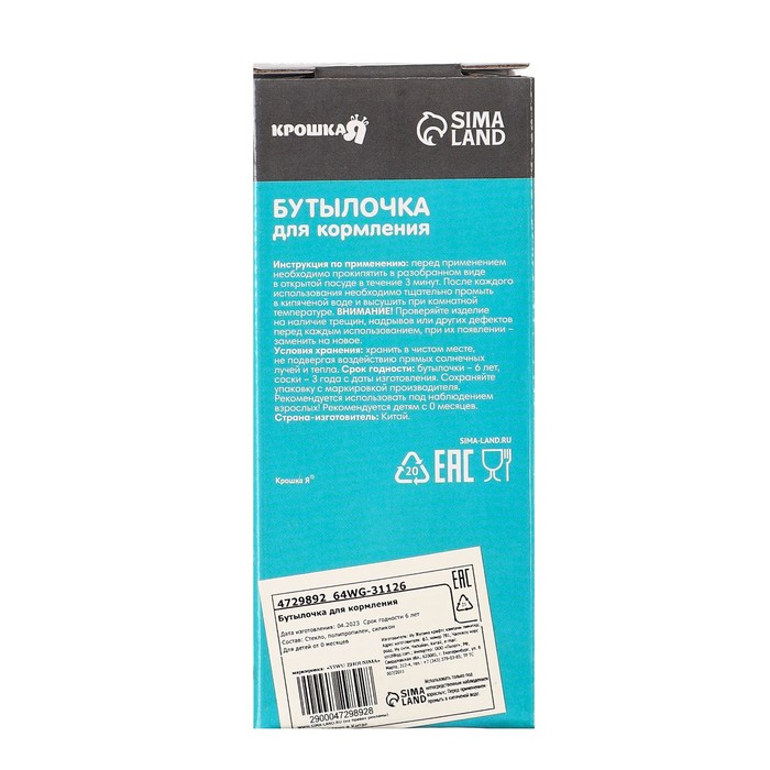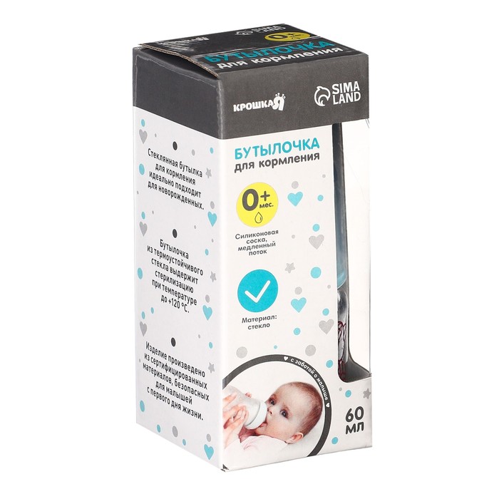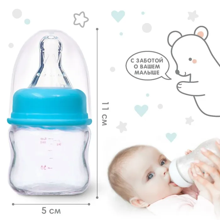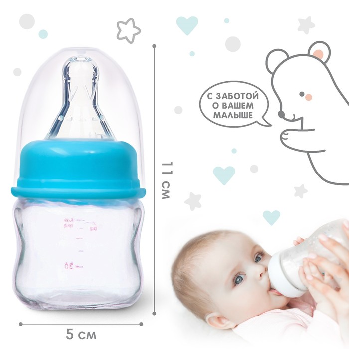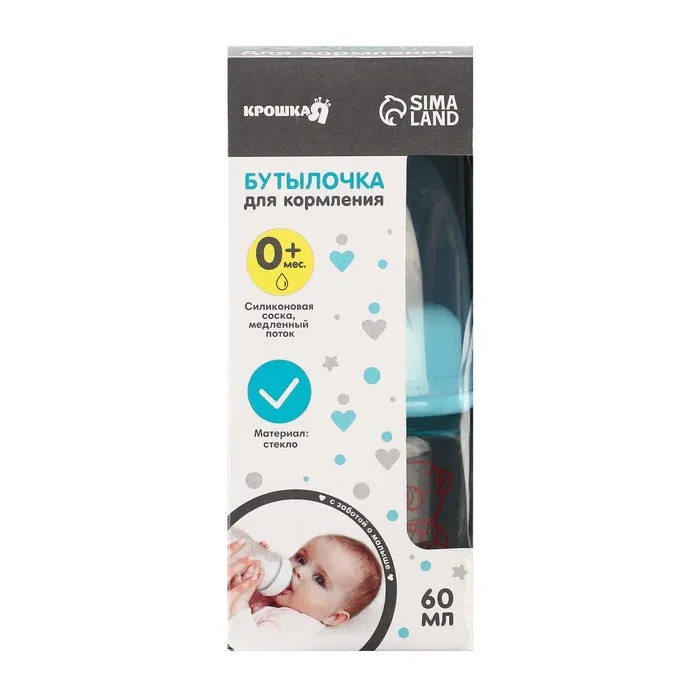 Бутылочка для кормления Крошка Я «Медвежонок», классическое горло, стекло, 60 мл., от 0 мес., голубой — Характеристики