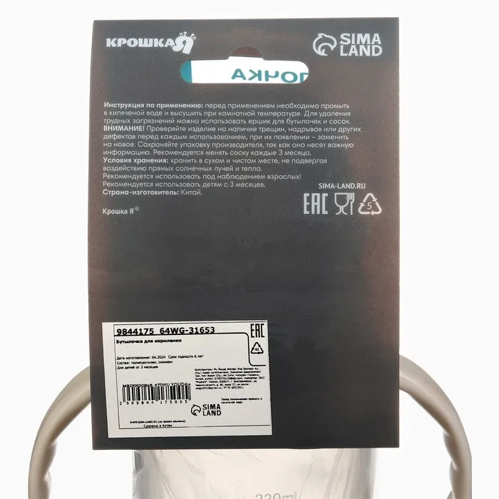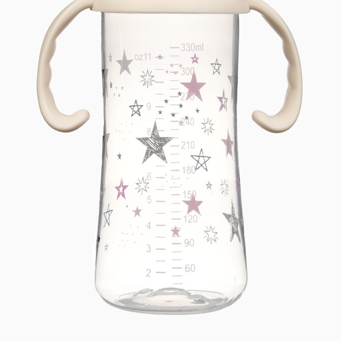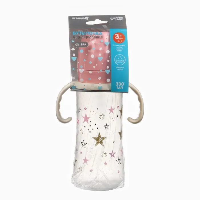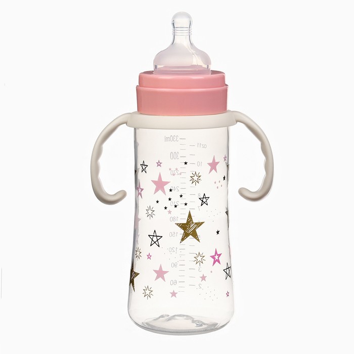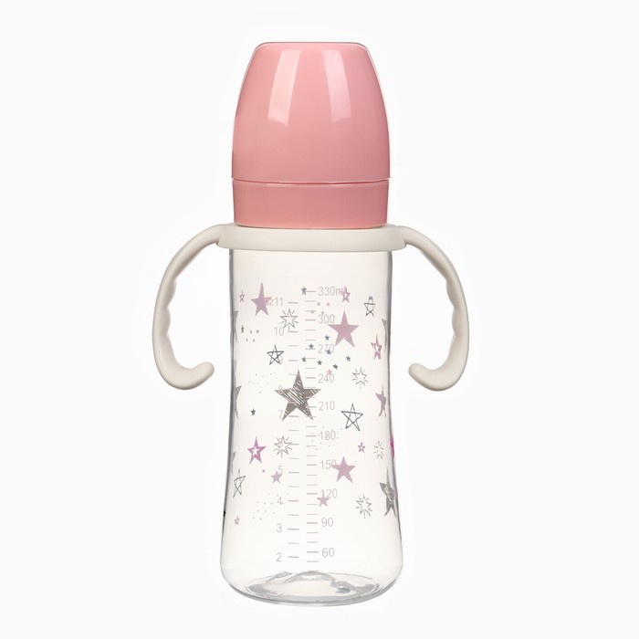 Бутылочка для кормления Крошка Я «Звезды», широкое горло, Ø50 мм, от 3 мес., 330 мл, розовая, ручки молочные — Характеристики