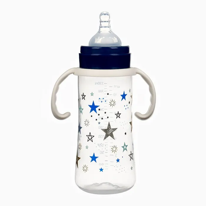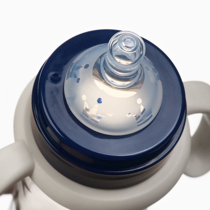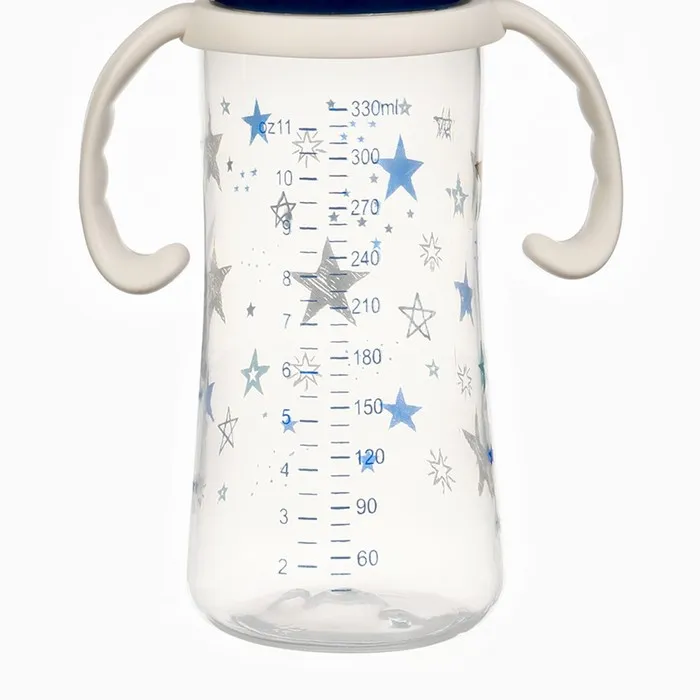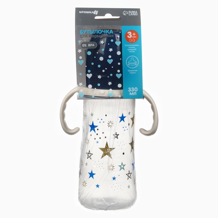 Бутылочка для кормления Крошка Я «Звезды», широкое горло, Ø50 мм, от 3 мес, 330 мл., темно-синяя, ручки молочные — Характеристики
