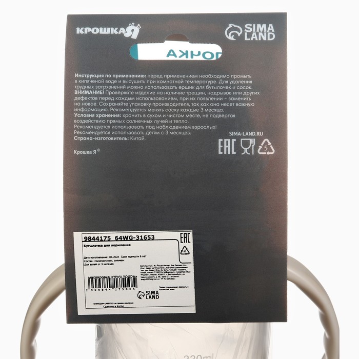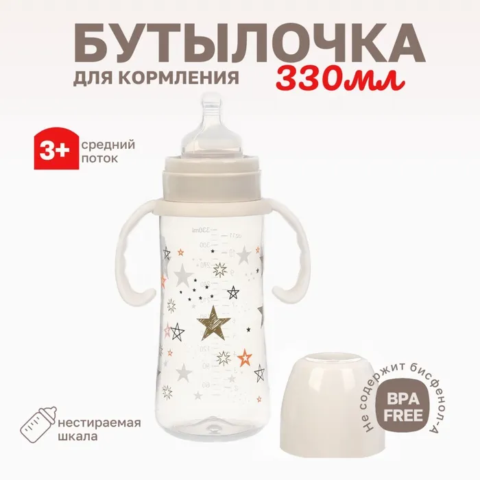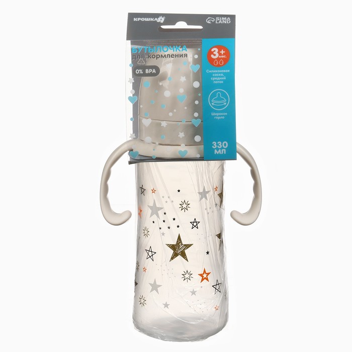 Бутылочка для кормления Крошка Я «Звезды», широкое горло, Ø50 мм, от 3 мес, 330 мл., цвет молочный — Характеристики
