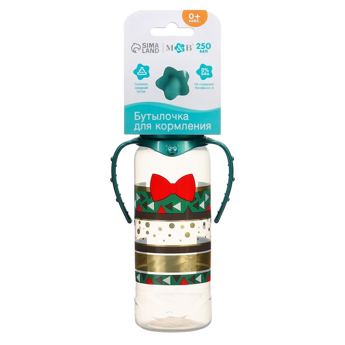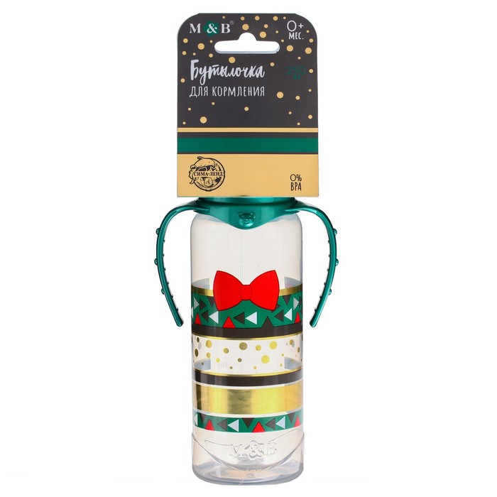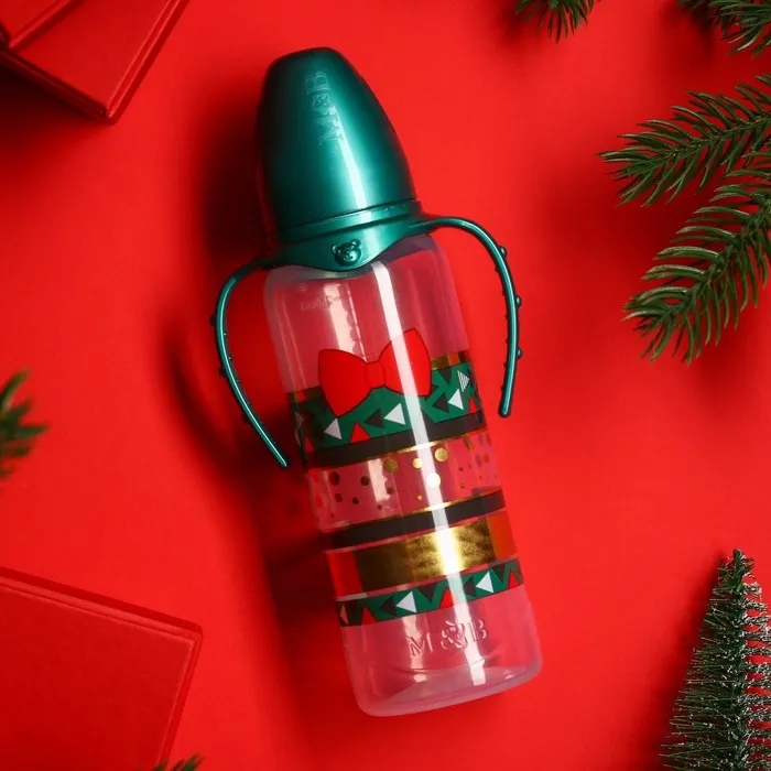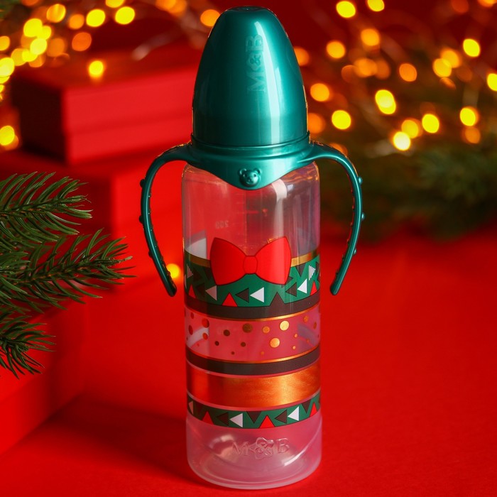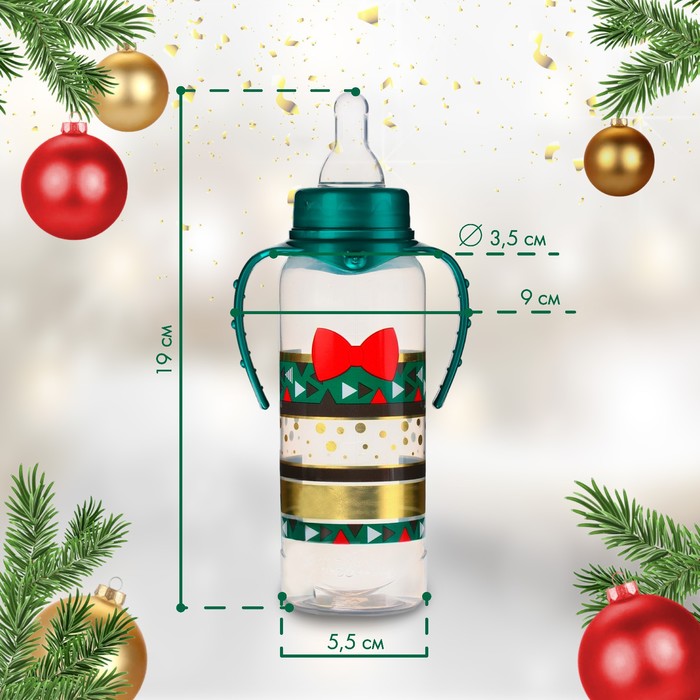 Бутылочка для кормления Little gentleman, новогодняя, классическое горло, от 3 мес, 250 мл., цилиндр, с ручками — Характеристики