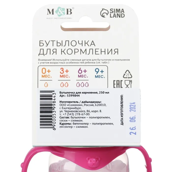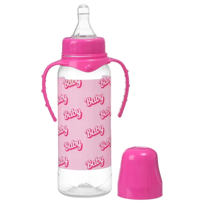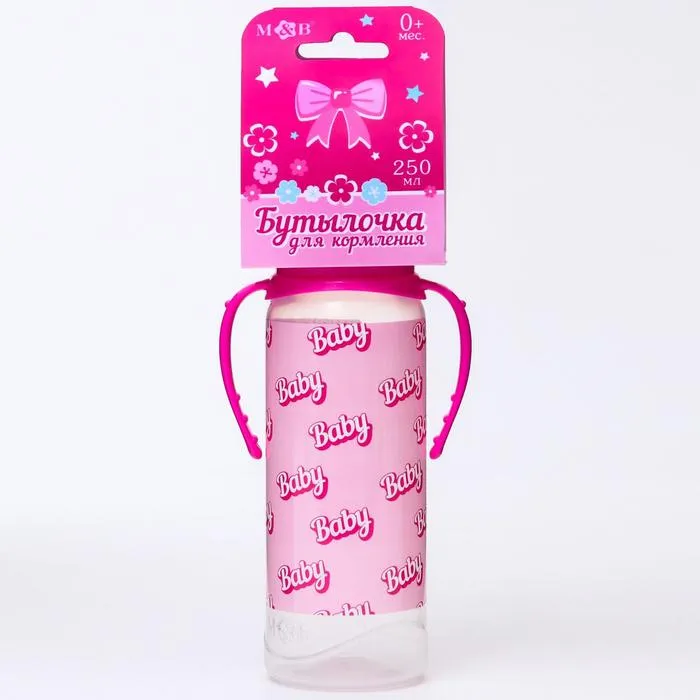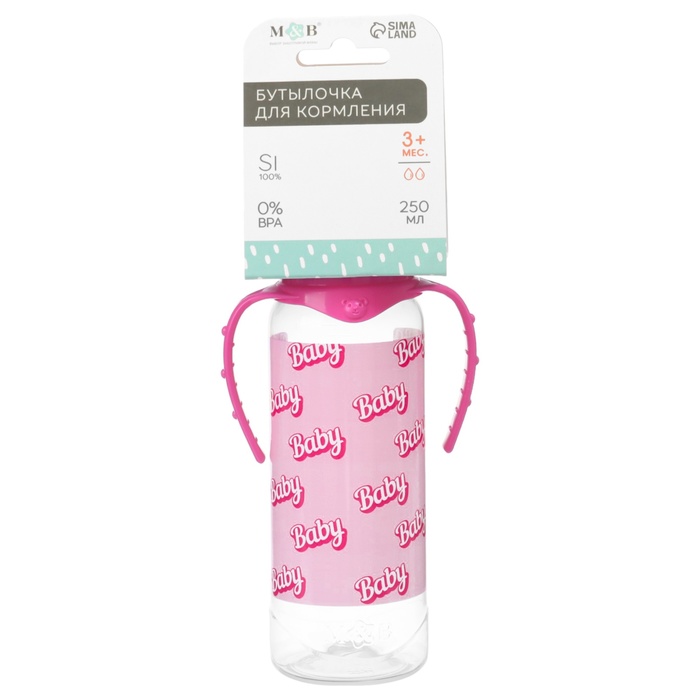 Бутылочка для кормления малыша M&B Baby, классическое горло, с ручками, от 3 мес, 250 мл., цилиндр — Характеристики