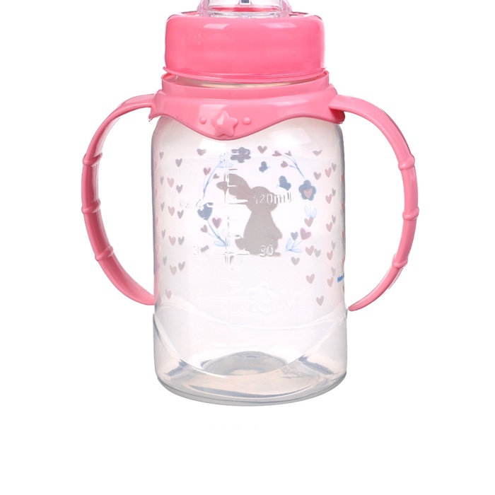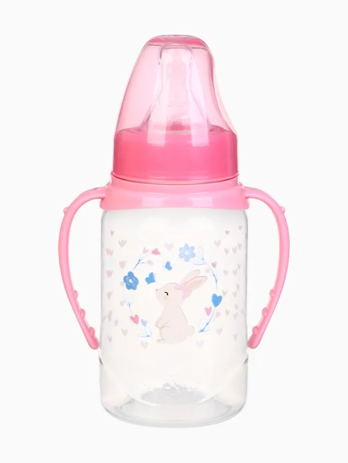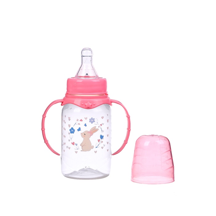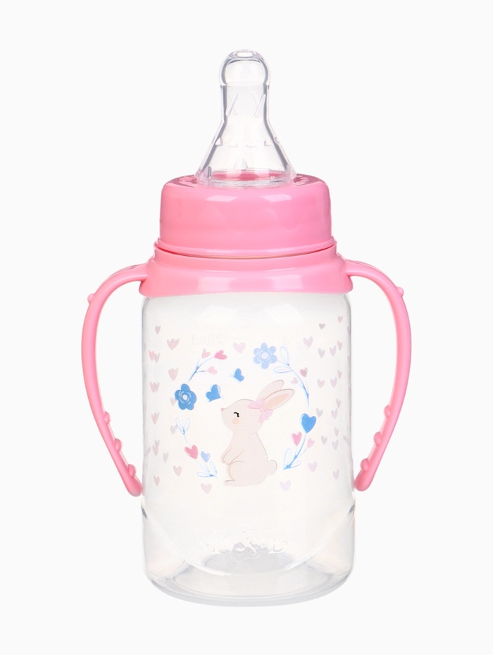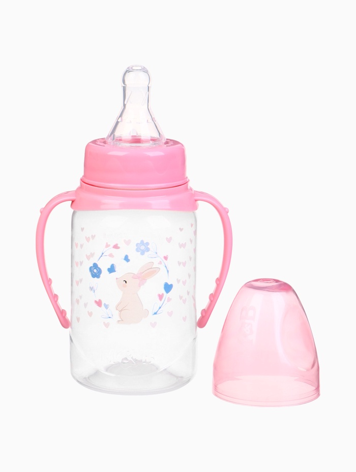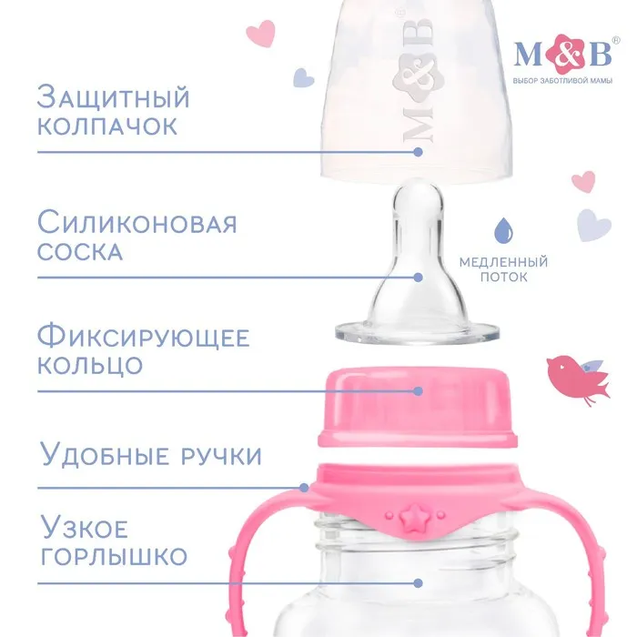 Бутылочка для кормления малыша M&B «Доченька», классическое горло, с ручками, от 0 мес., 150 мл., розовый — Характеристики