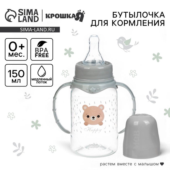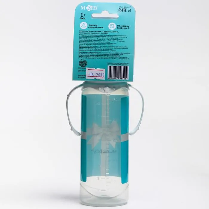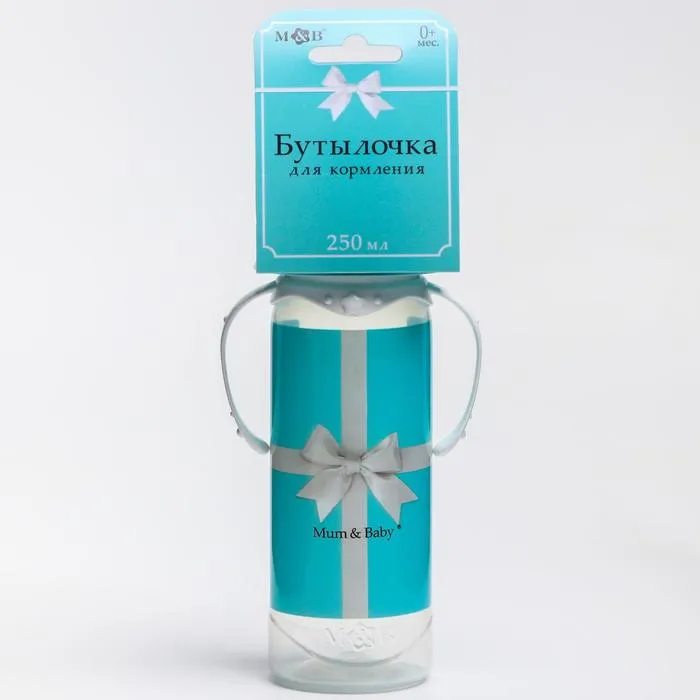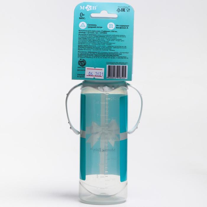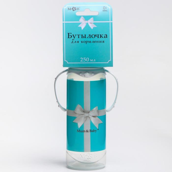 Бутылочка для кормления малыша M&B «Тиффани», классическое горло, с ручками, от 0 мес., 250 мл., цилиндр — Характеристики