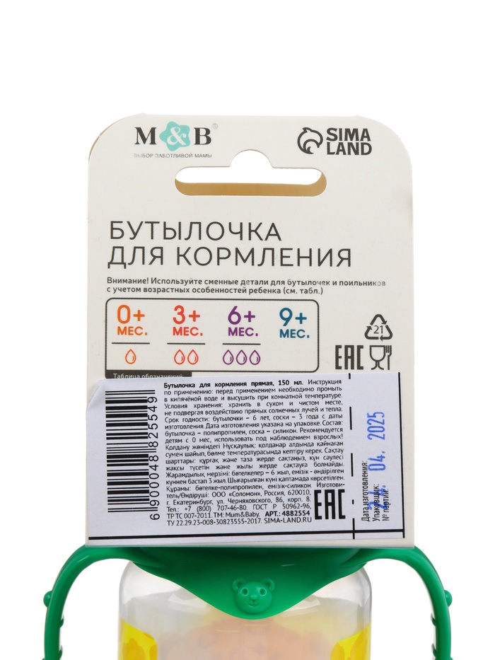 Детская бутылочка изготовлена в России из сырья отечественного производства. Все материалы сертифицированы и безопасны для здоровья новорождённых. Полипропилен и силикон не выделяют вредных веществ при стерилизации и контакте с жидкостью.