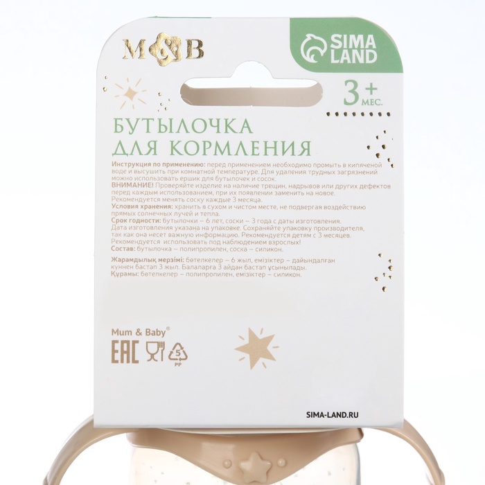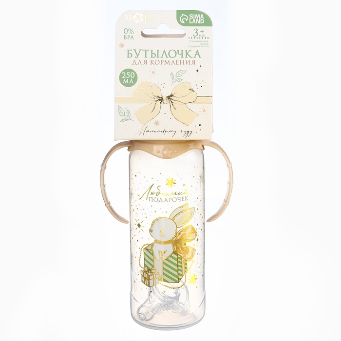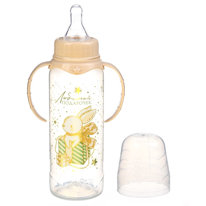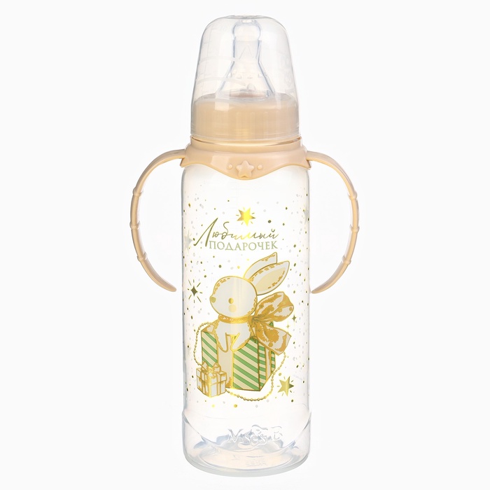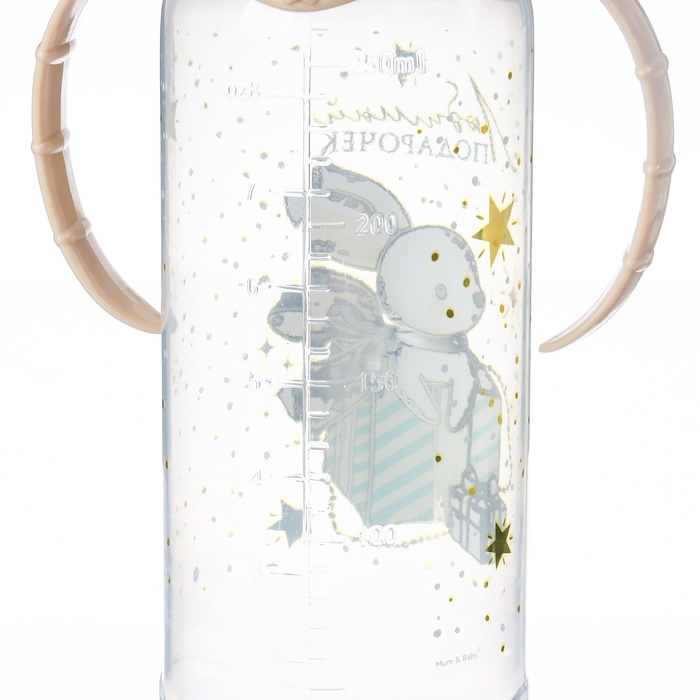 Бутылочка для кормления малыша M&B «Волшебство рядом», классическое горло, с ручками, от 3 мес., 250 мл., цилиндр, новогодняя — Характеристики