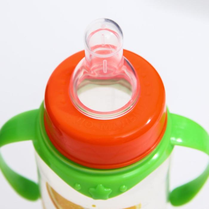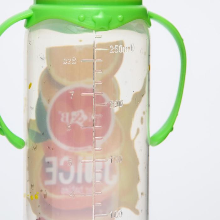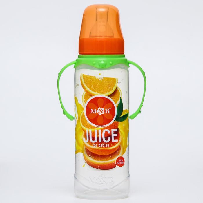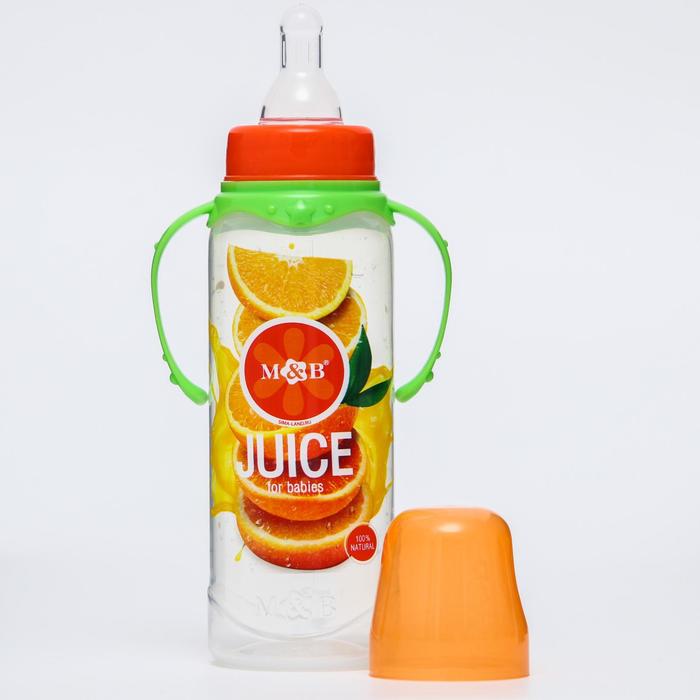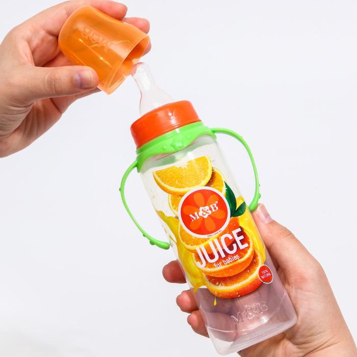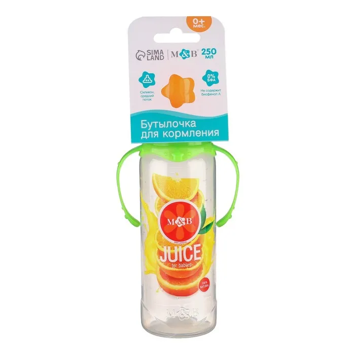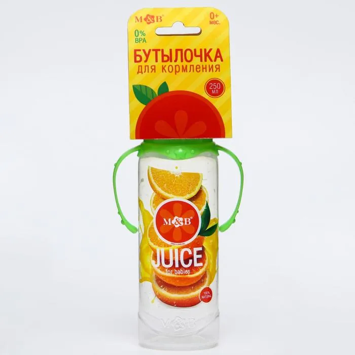 Бутылочка для кормления M&B «Апельсиновый сок», классическое горло, с ручками, от 0 мес., 250 мл., цилиндр — Характеристики