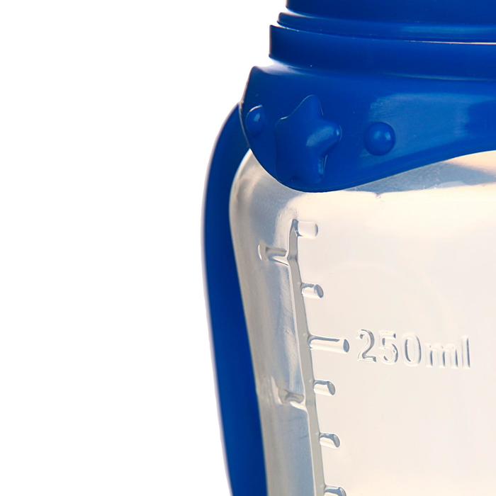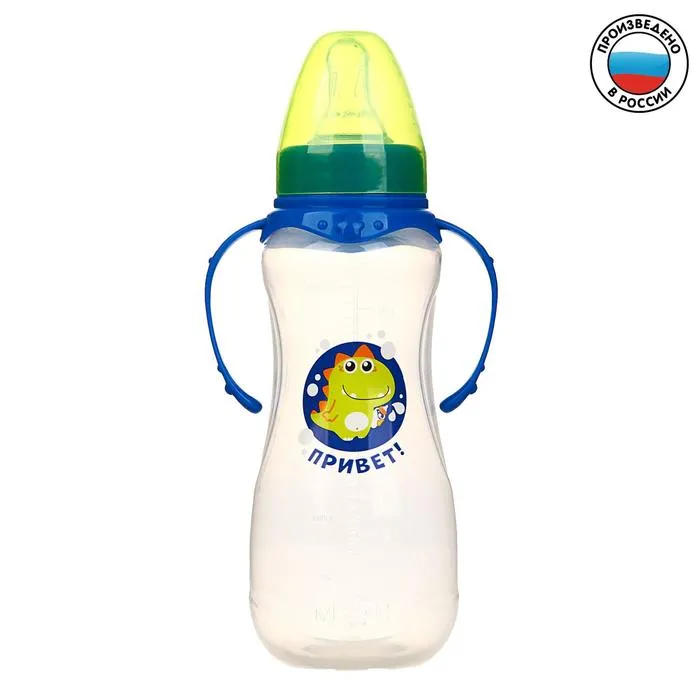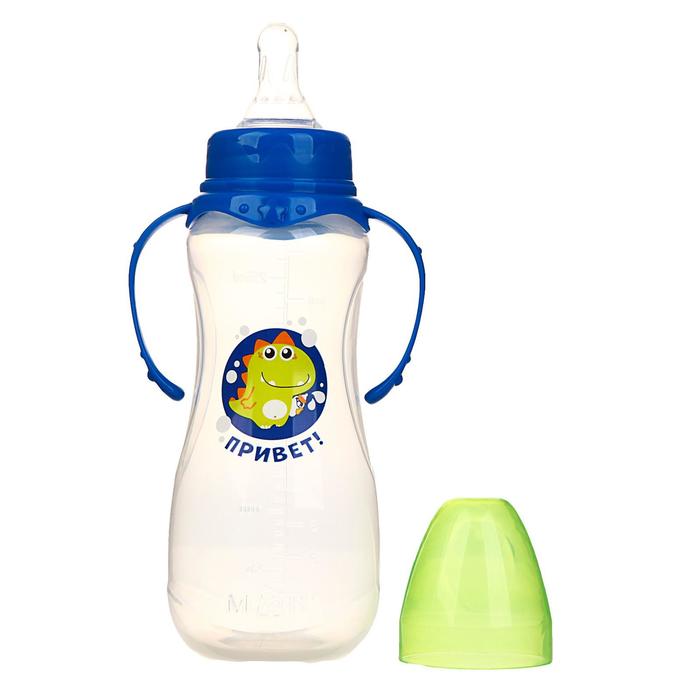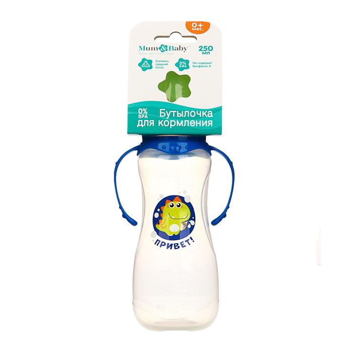 Бутылочка для кормления M&B «Динозаврик Рикки» с ручками, от 0 мес., 250 мл., приталенная, синий — Характеристики