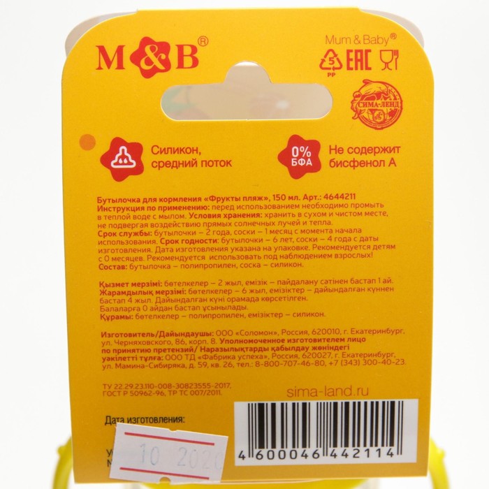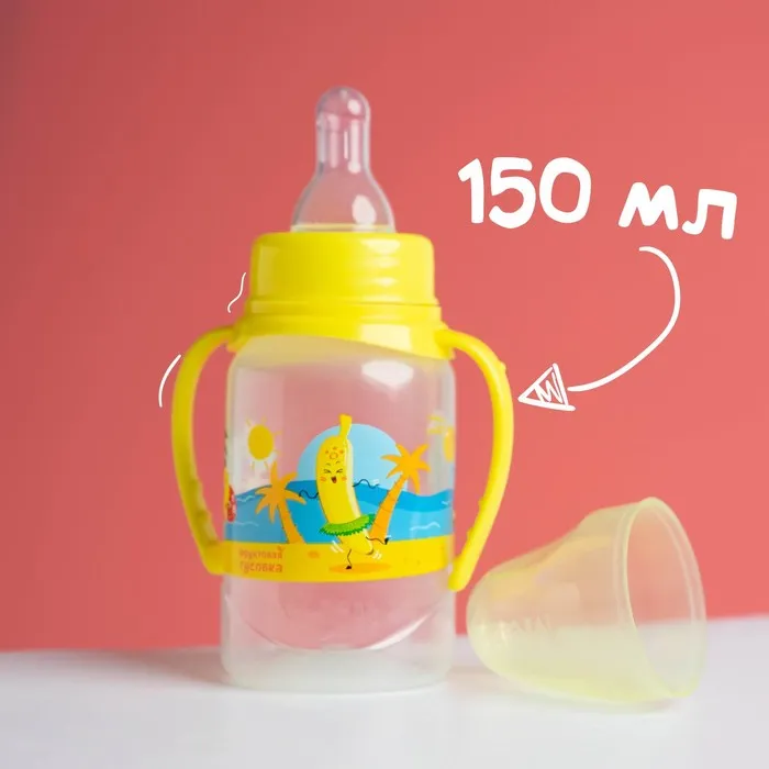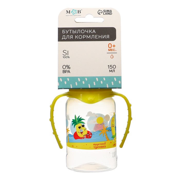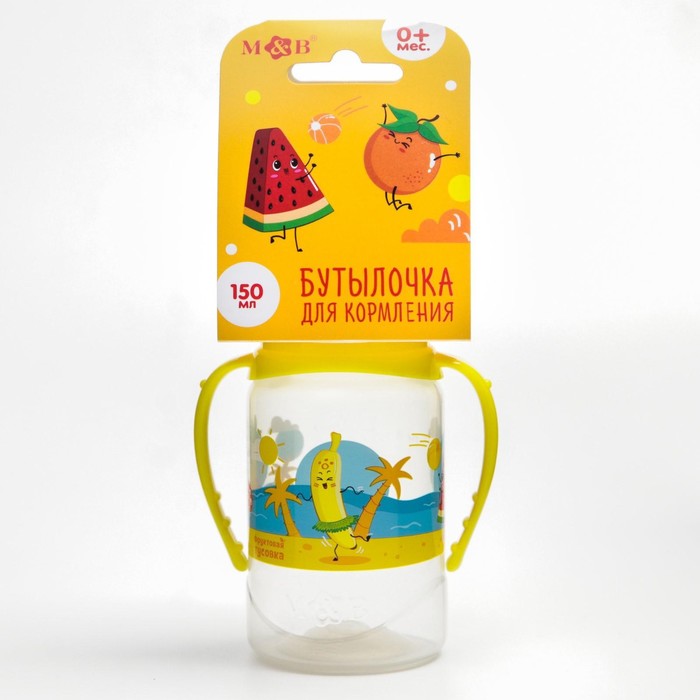 Бутылочка для кормления M&B «Фрукты пляж», классическое горло, с ручками, от 0 мес., 150 мл., цилиндр — Характеристики