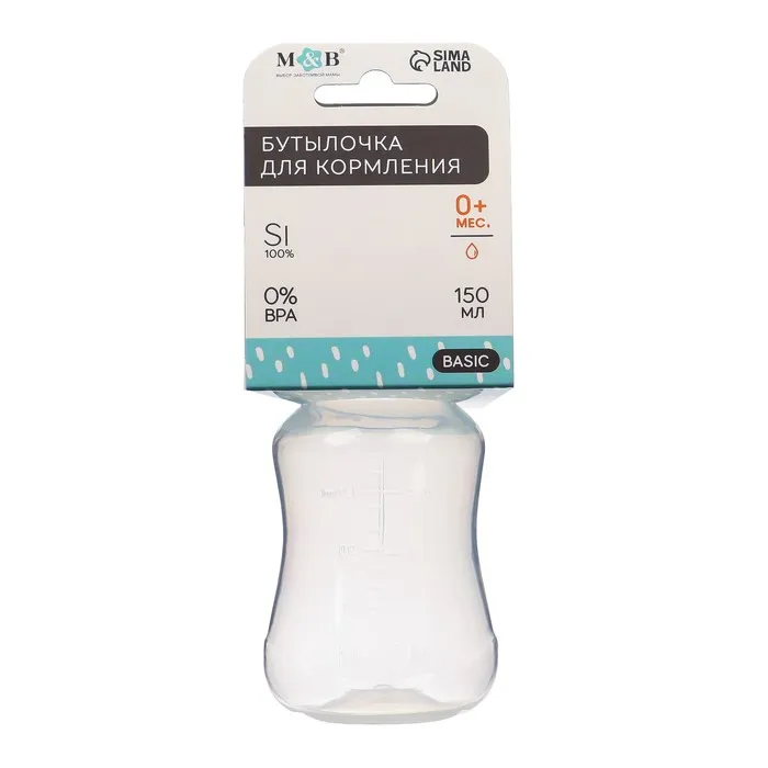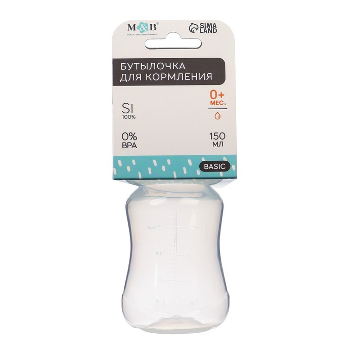 Бутылочка для кормления M&B, классическое горло, от 0 мес., 150 мл., приталенная, синий — Характеристики
