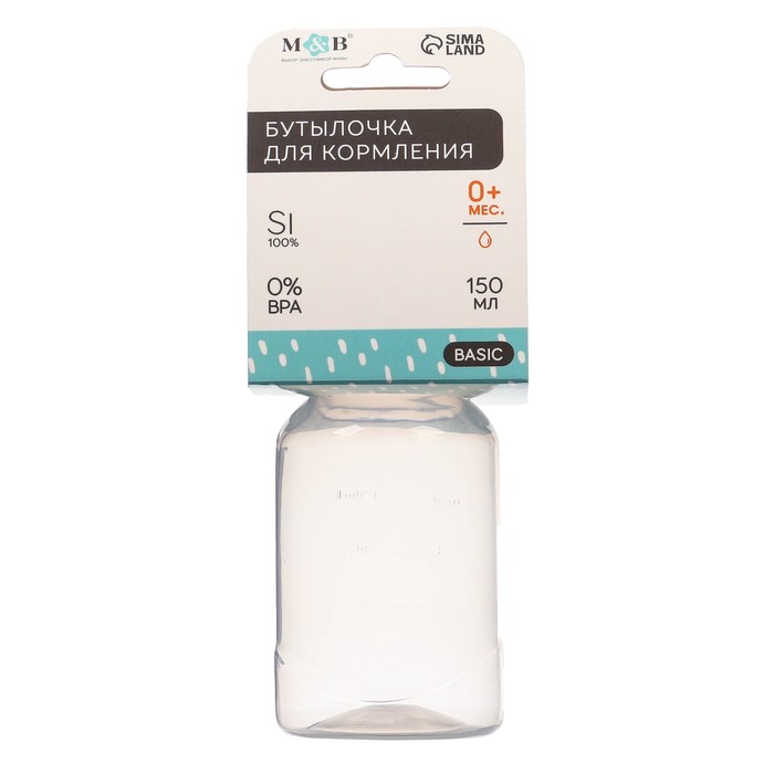 Бутылочка для кормления M&B, классическое горло, от 0 мес., 150 мл., цилиндр, розовый — Характеристики