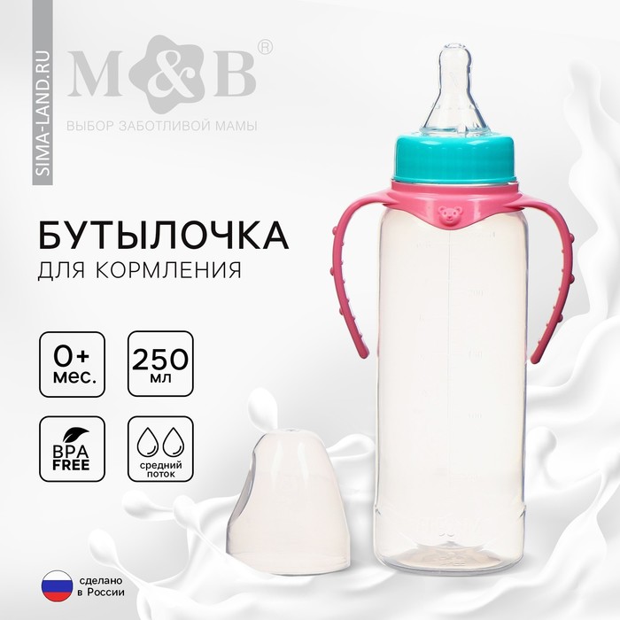 Бутылочка для кормления M&B, классическое горло, от 0 мес., 250 мл., приталенная, красный — Характеристики