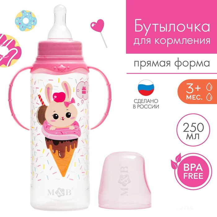 Бутылочка для кормления M&B, классическое горло, с ручками, от 0 мес., 150 мл., приталенная, голубой — Характеристики