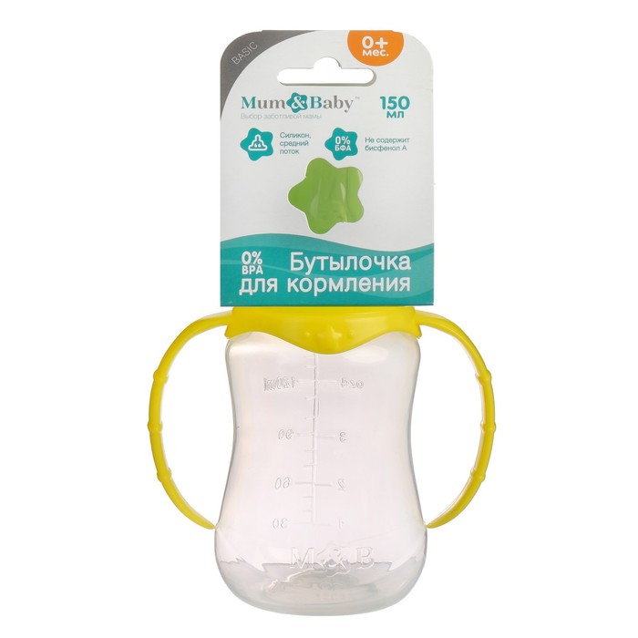Бутылочка для кормления M&B, классическое горло, с ручками, от 0 мес., 150 мл., приталенная, жёлтый — Характеристики