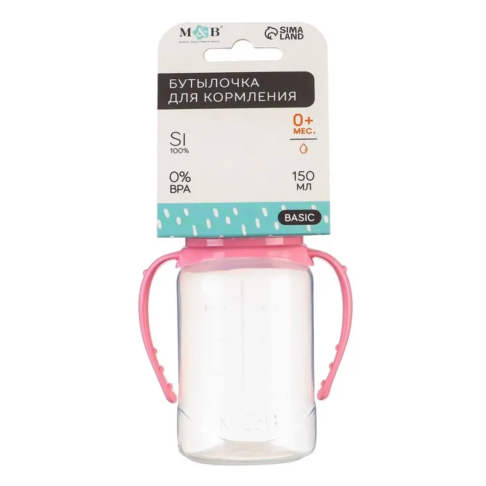 Бутылочка для кормления M&B, классическое горло, с ручками, от 0 мес., 150 мл., розовый — Характеристики