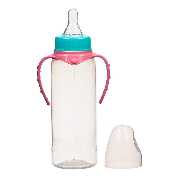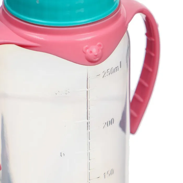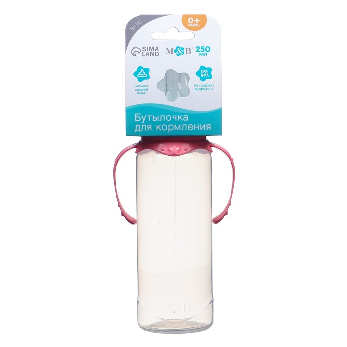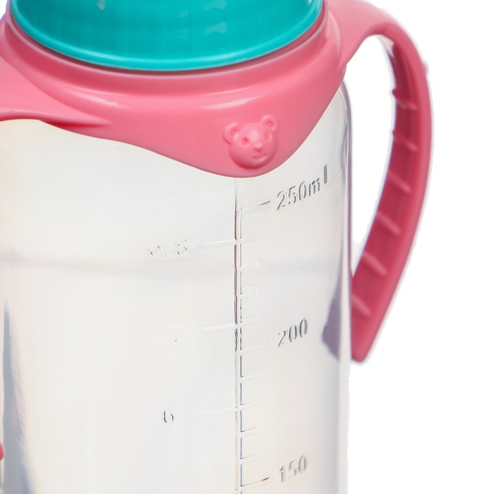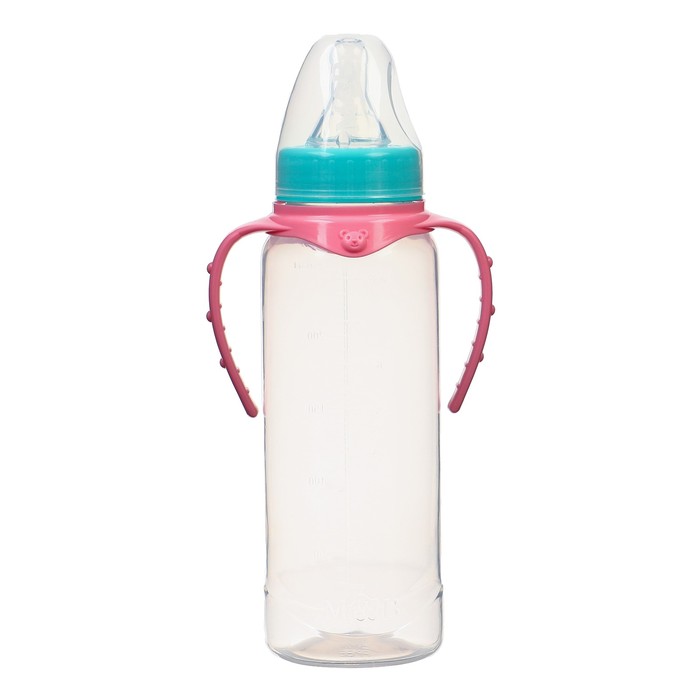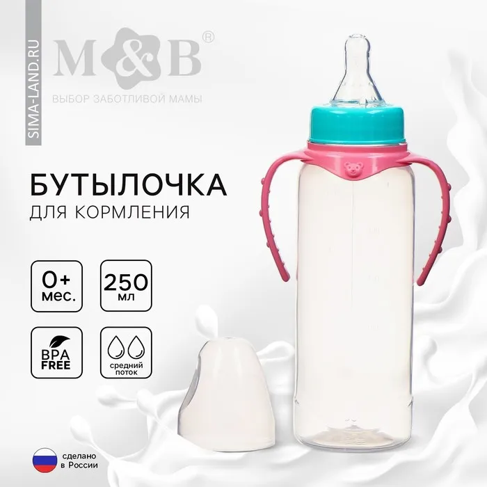Бутылочка для кормления M&B, классическое горло, с ручками, от 0 мес., 250 мл., цилиндр, бирюзовый/розовый — Характеристики