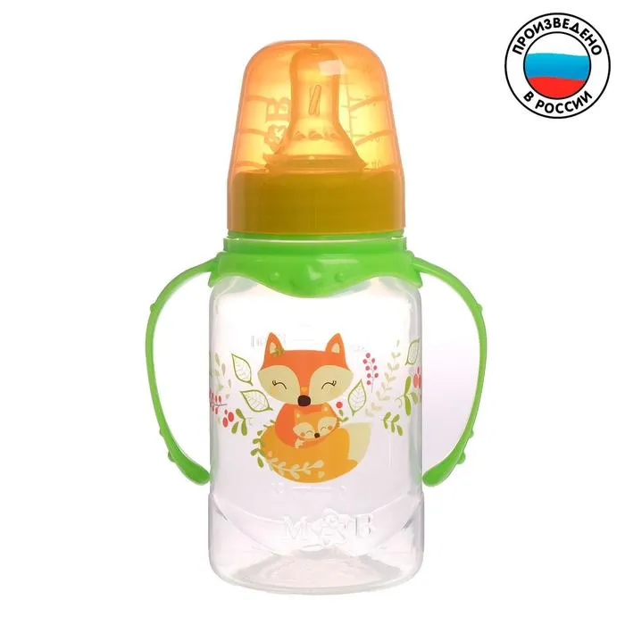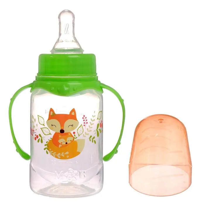 Бутылочка для кормления M&B «Лисичка Соня», классическое горло, с ручками, от 0 мес., 150 мл, зелёный — Характеристики