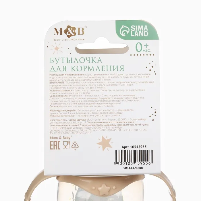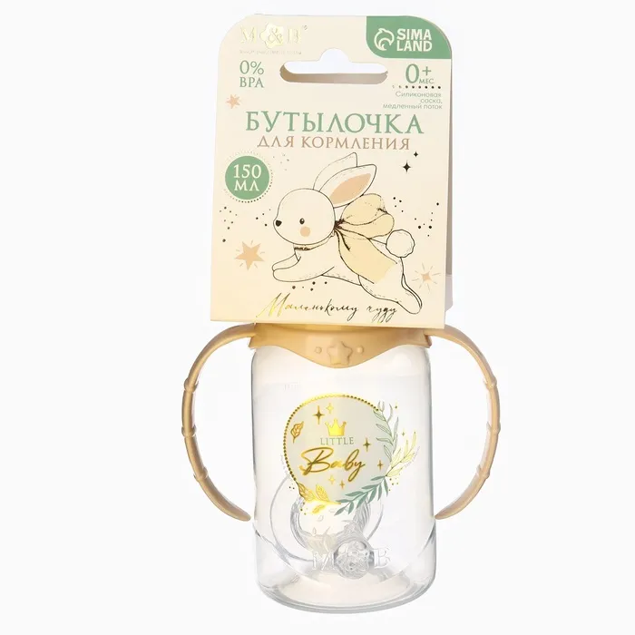 Бутылочка для кормления M&B Little Baby, классическое горло, с ручками, от 0 мес., 150 мл., цилиндр, подарочная — Характеристики