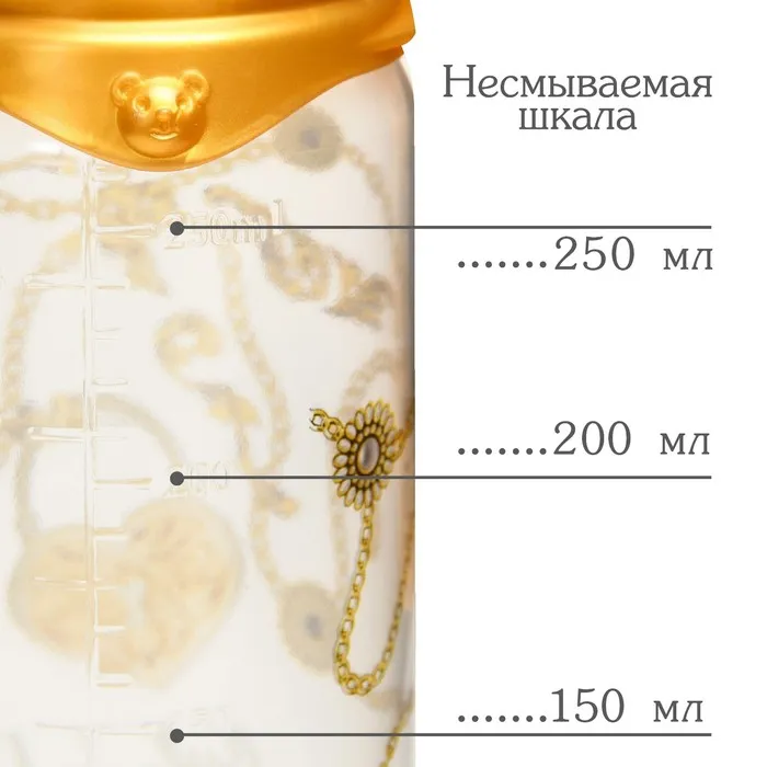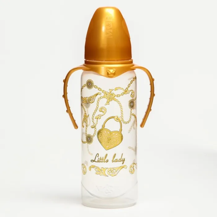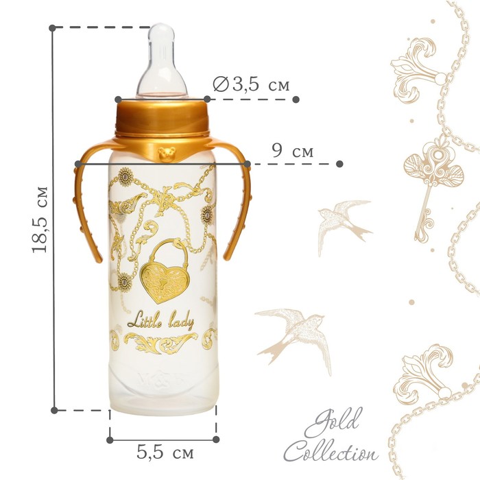 Бутылочка для кормления M&B Little lady, классическое горло, с ручками, от 3 мес., 250 мл., Золотая коллекция — Характеристики