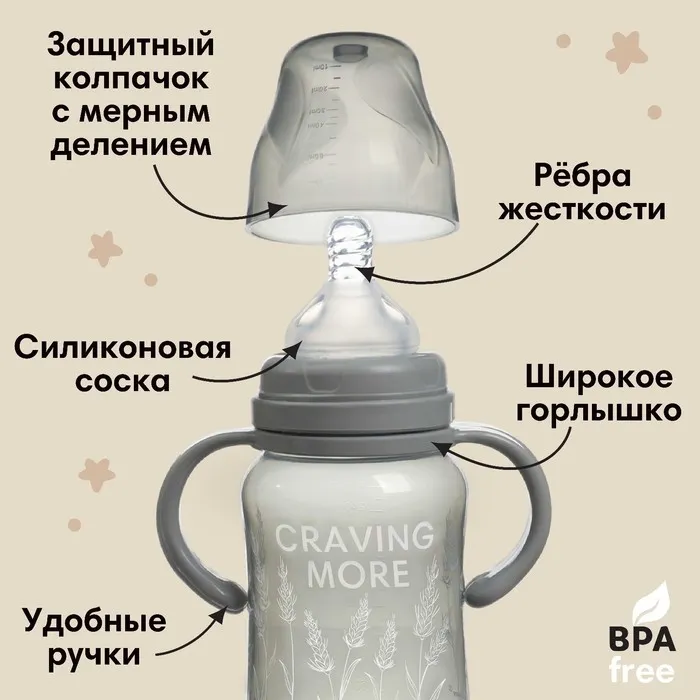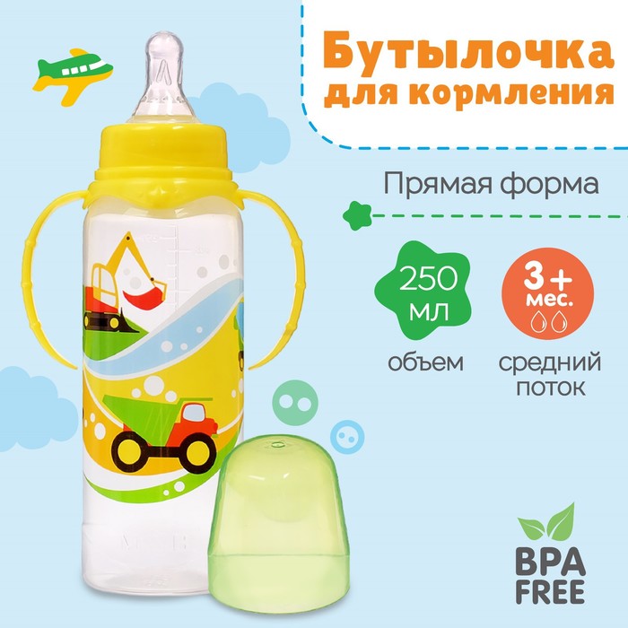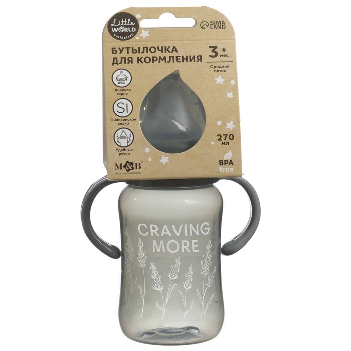 Бутылочка для кормления M&B Little world collection, широкое горло, средний поток от 3 мес., 270 мл. — Характеристики