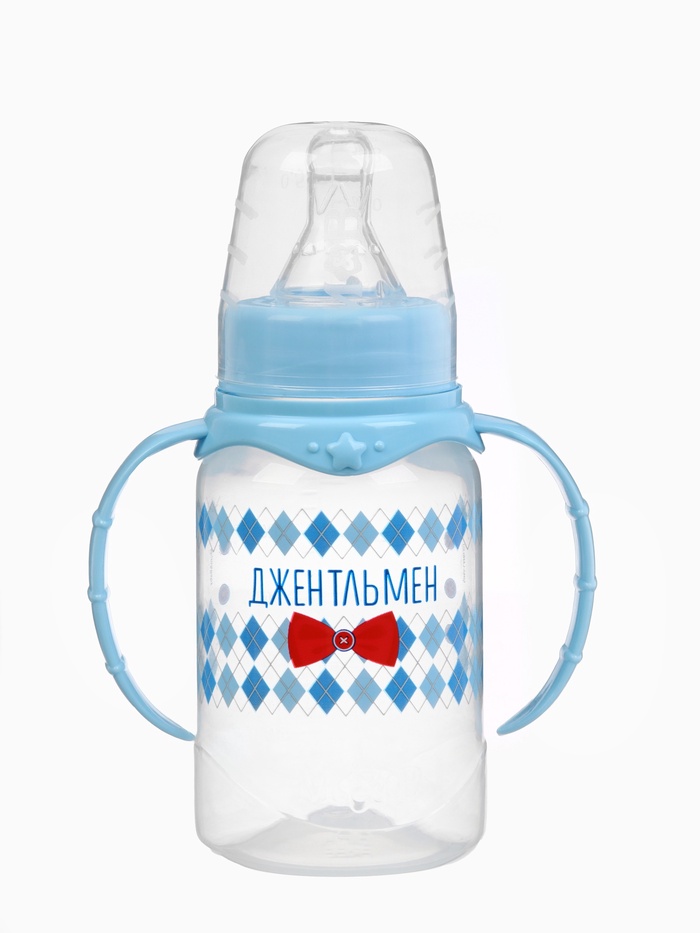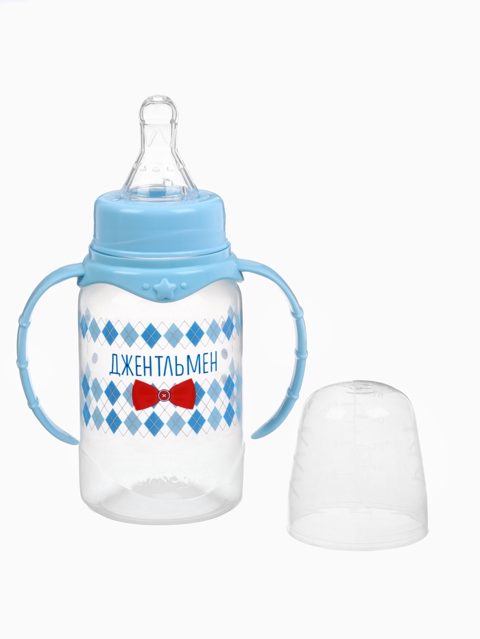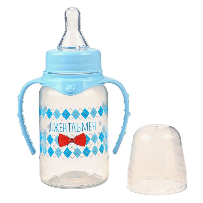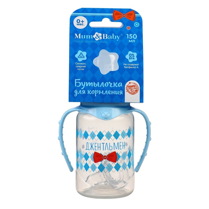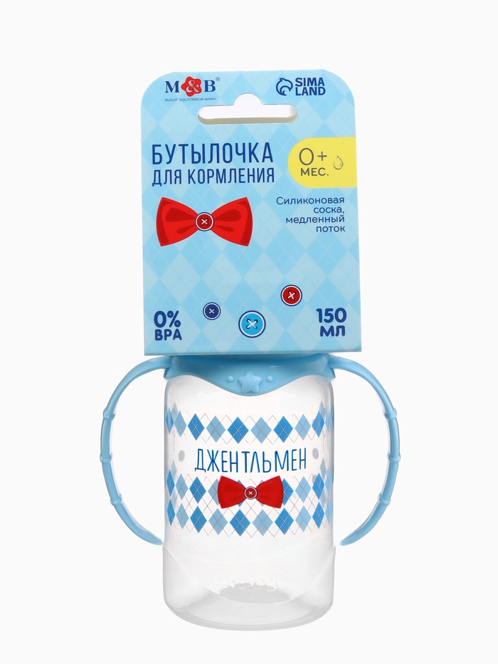 Бутылочка для кормления M&B «Маленький джентльмен» детская классическая, с ручками, 150 мл, от 0 мес., голубой — Характеристики