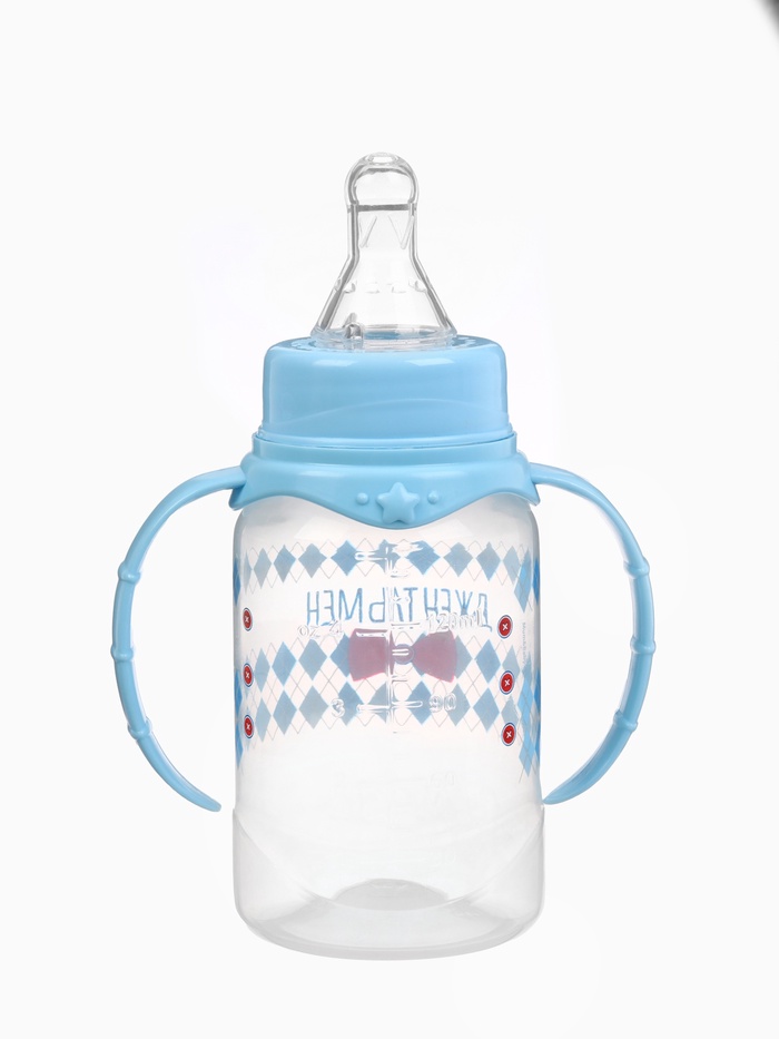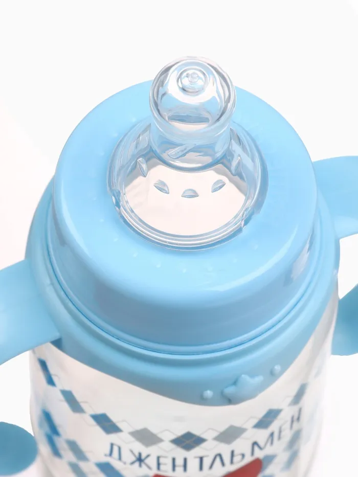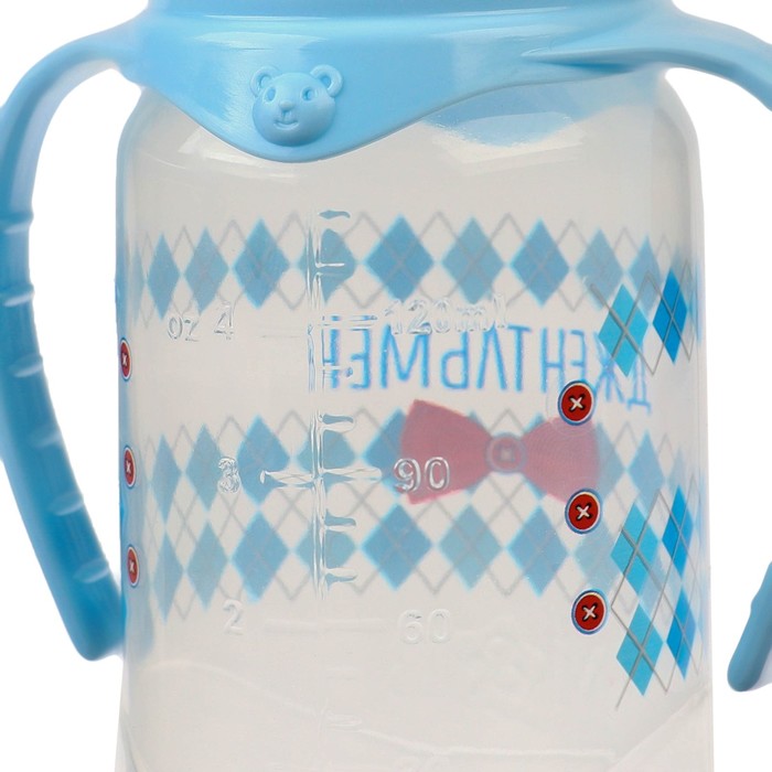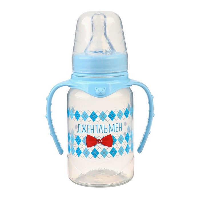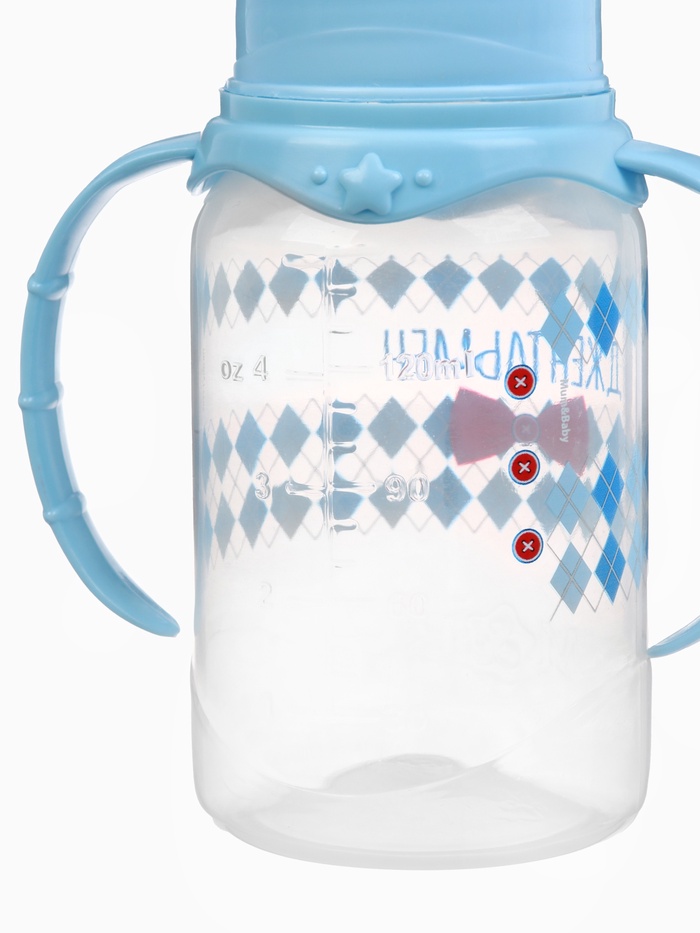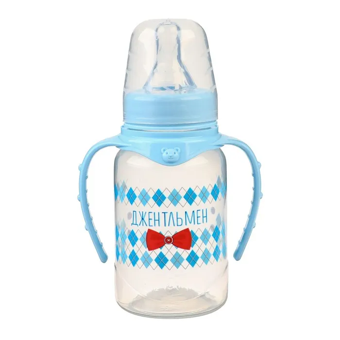 Бутылочка для кормления M&B «Маленький джентльмен» детская классическая, с ручками, 150 мл, от 0 мес., голубой — Характеристики