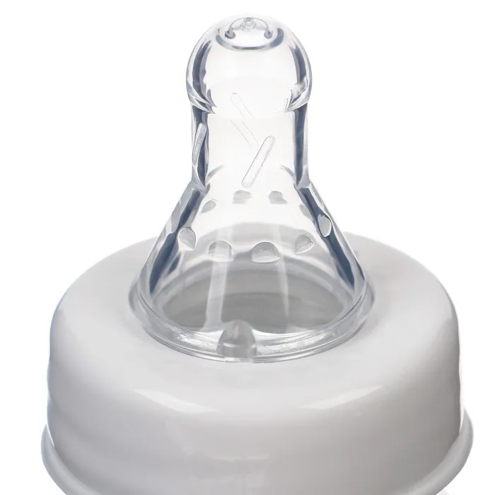 Бутылочка имеет мягкую и гибкую соску, которая не слипнется и будет удобно располагаться у малыша во рту.
