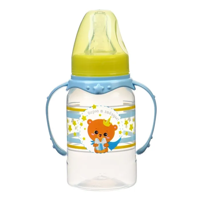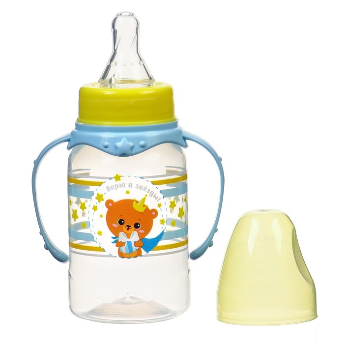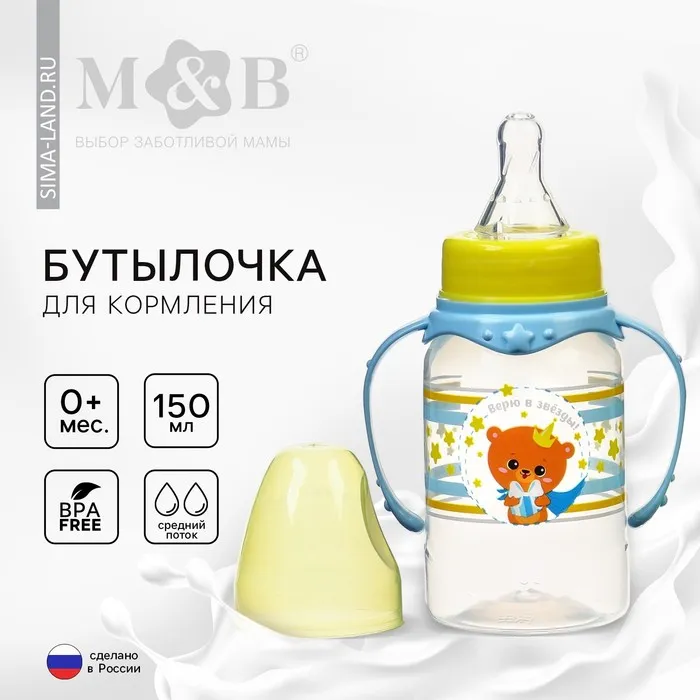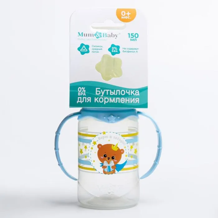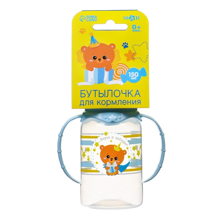 Бутылочка для кормления M&B «Мишка принц», классическое горло, с ручками, от 0 мес., 150 мл., цилиндр — Характеристики
