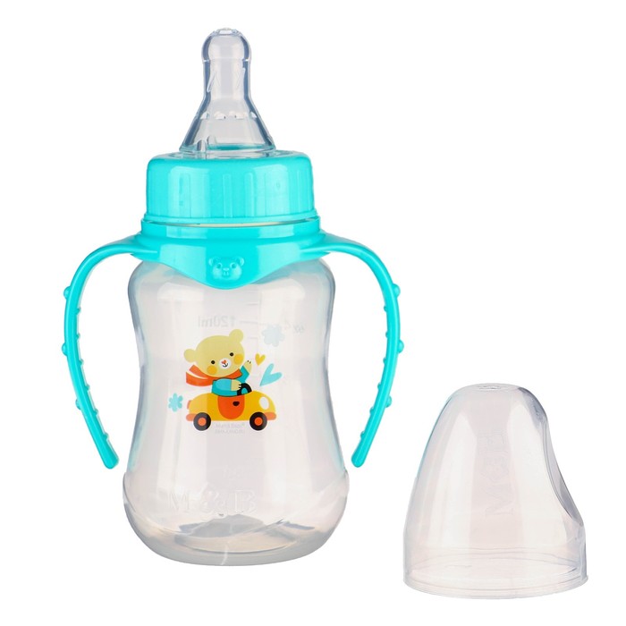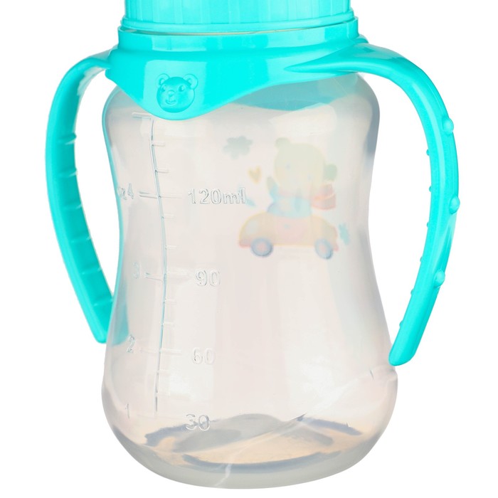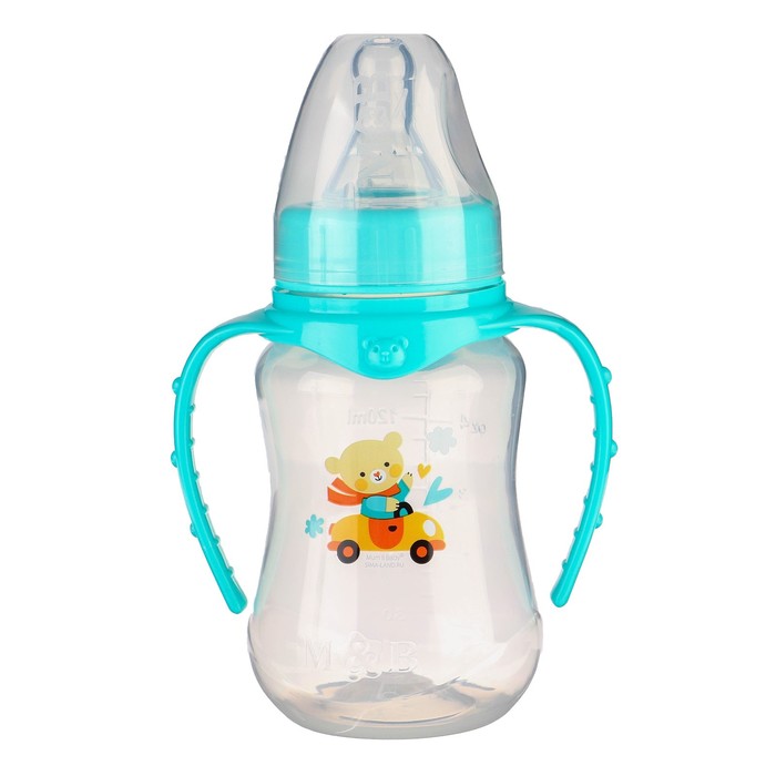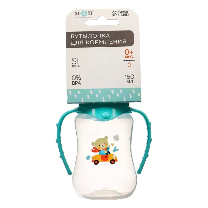 Бутылочка для кормления M&B «Мишутка», классическое горло, с ручками, от 0 мес., 150 мл., приталенная, бирюзовый — Характеристики