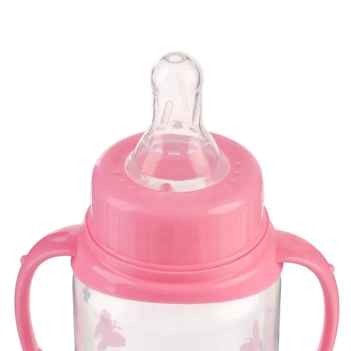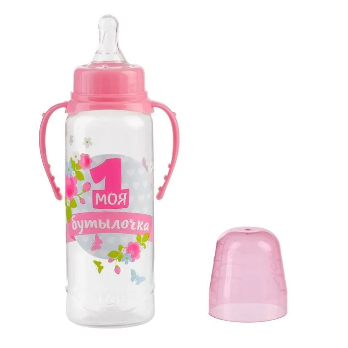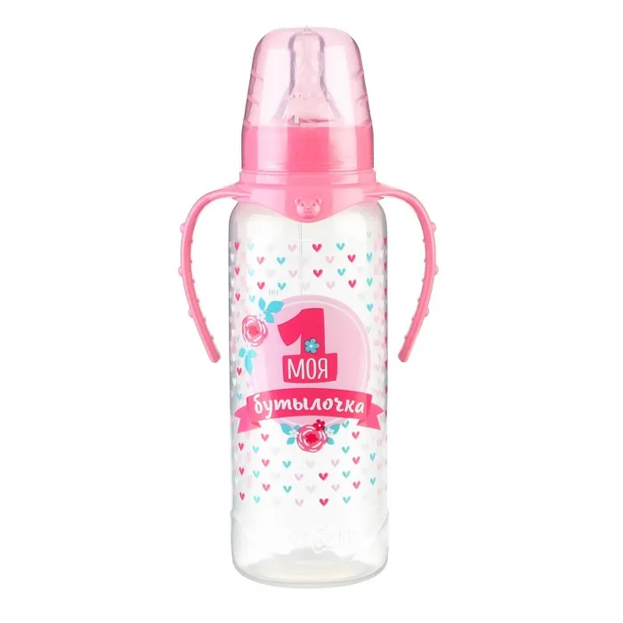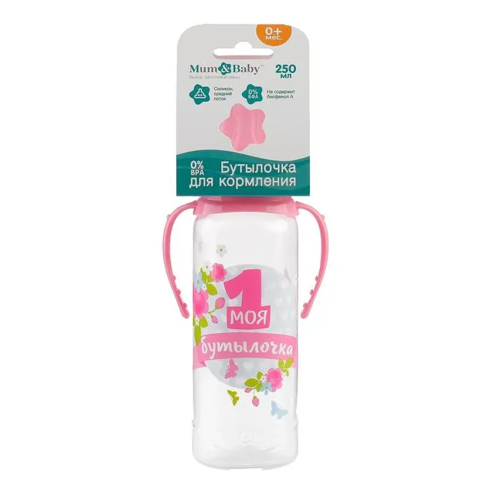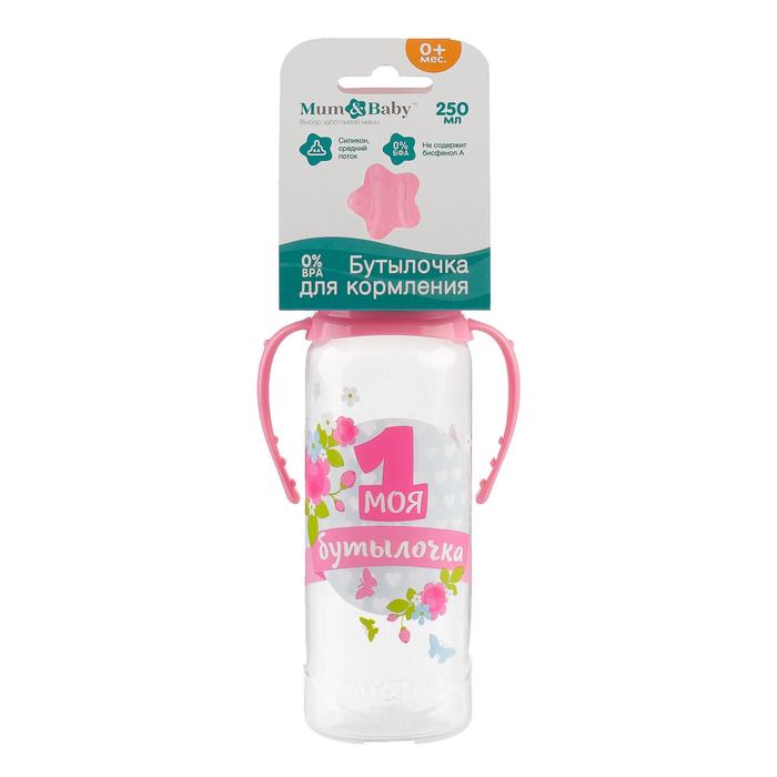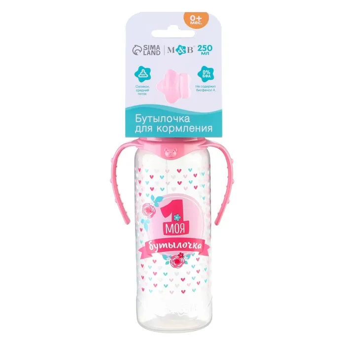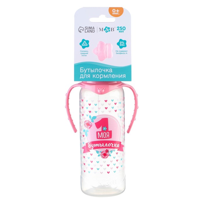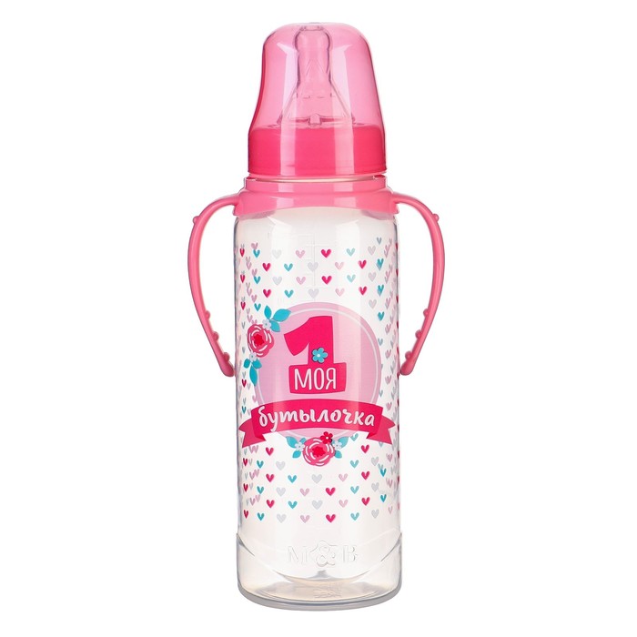 Бутылочка для кормления M&B «Моя первая бутылочка», классическое горло, с ручками, от 0 мес., 250 мл., розовый — Характеристики