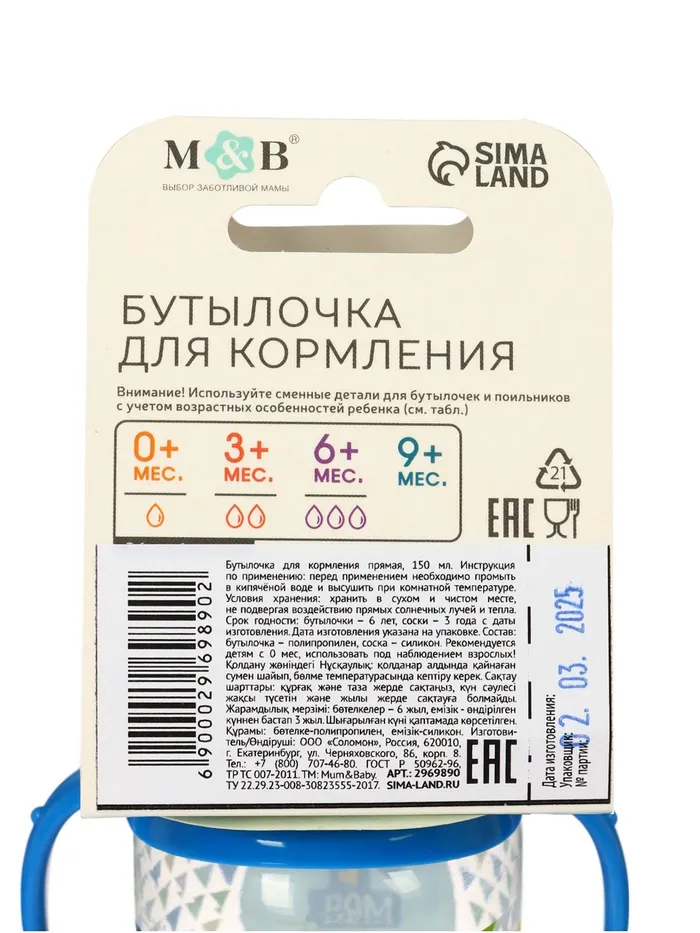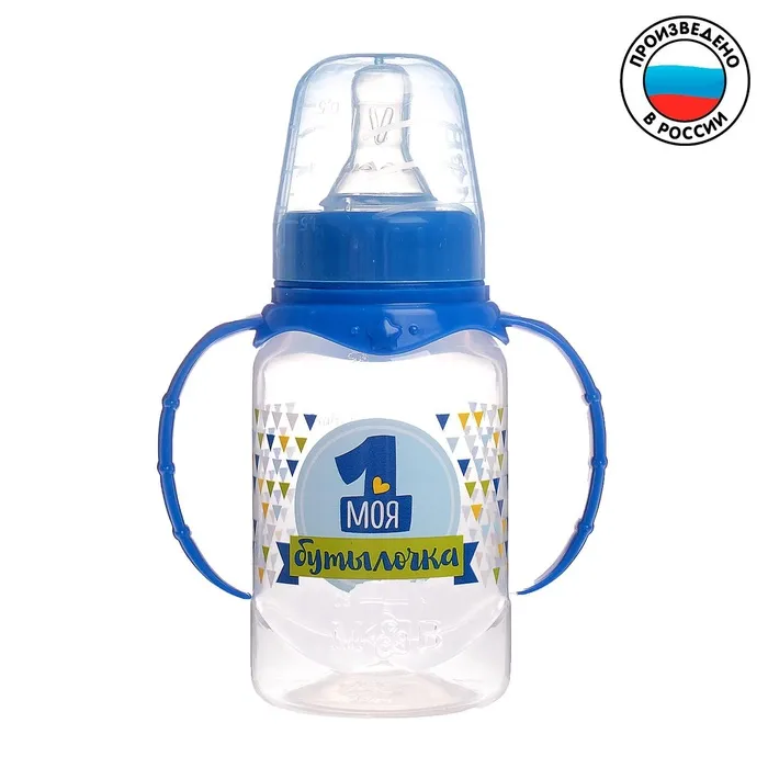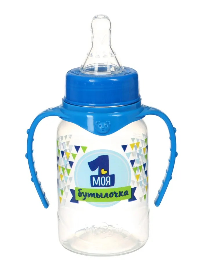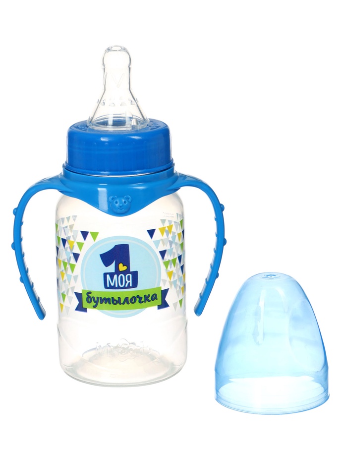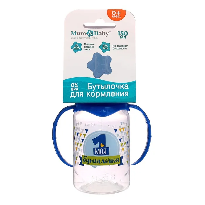 Бутылочка для кормления M&B «Моя первая бутылочка» с ручками, классическое горло, от 0 мес., 150 мл., синий — Характеристики