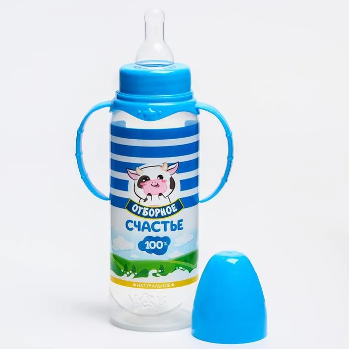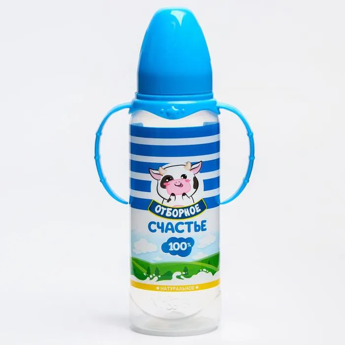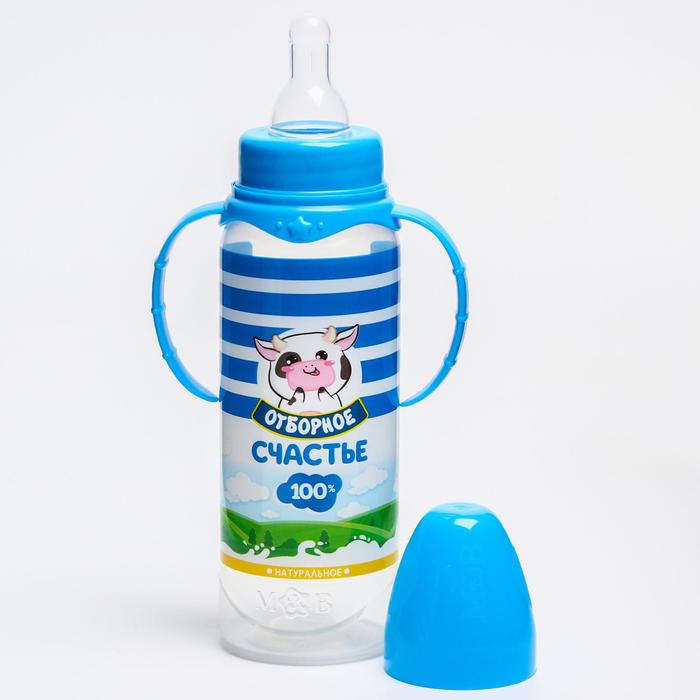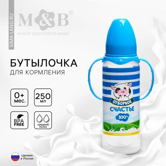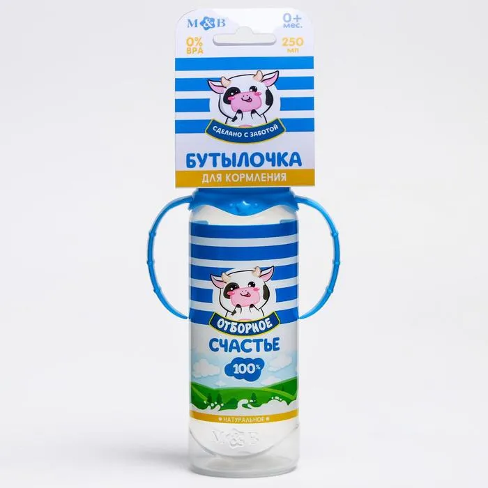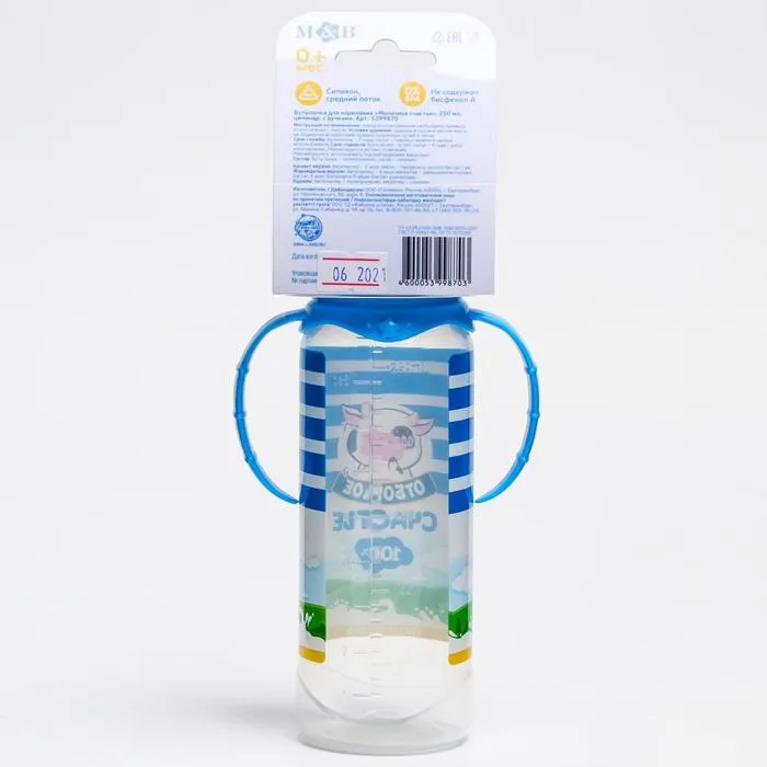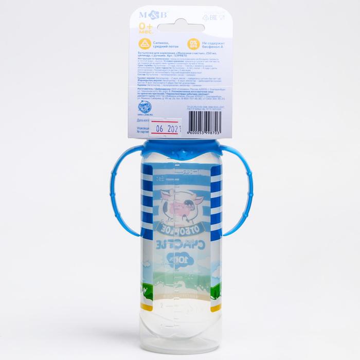 Бутылочка для кормления M&B «Молочное счастье», классическое горло, с ручками, от 0 мес., 250 мл., цилиндр — Характеристики