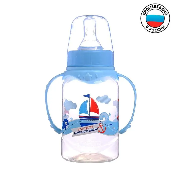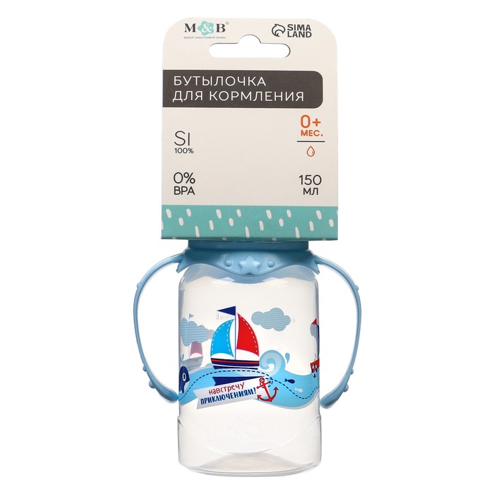Бутылочка для кормления M&B «Морское приключение», классическое горло, с ручками, от 0 мес., 150 мл., голубой — Характеристики