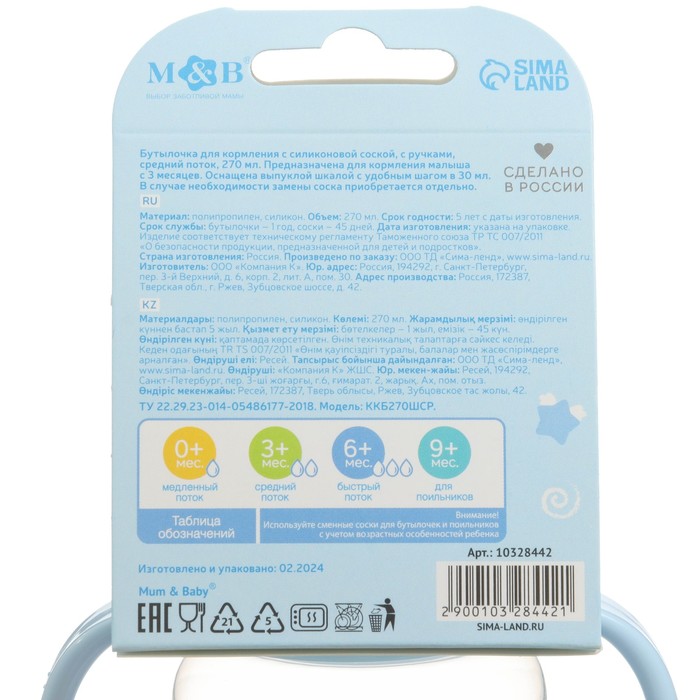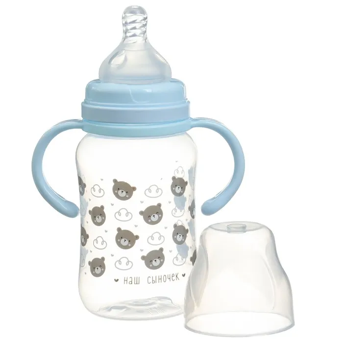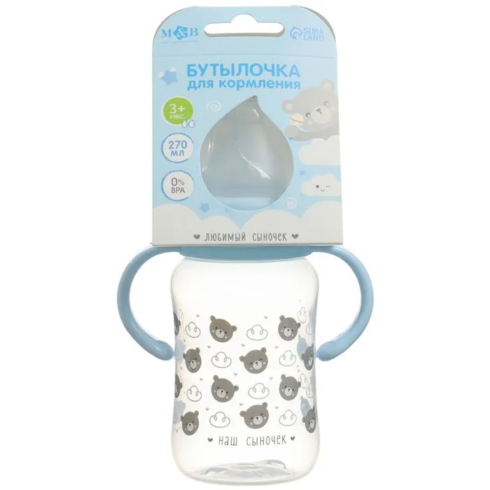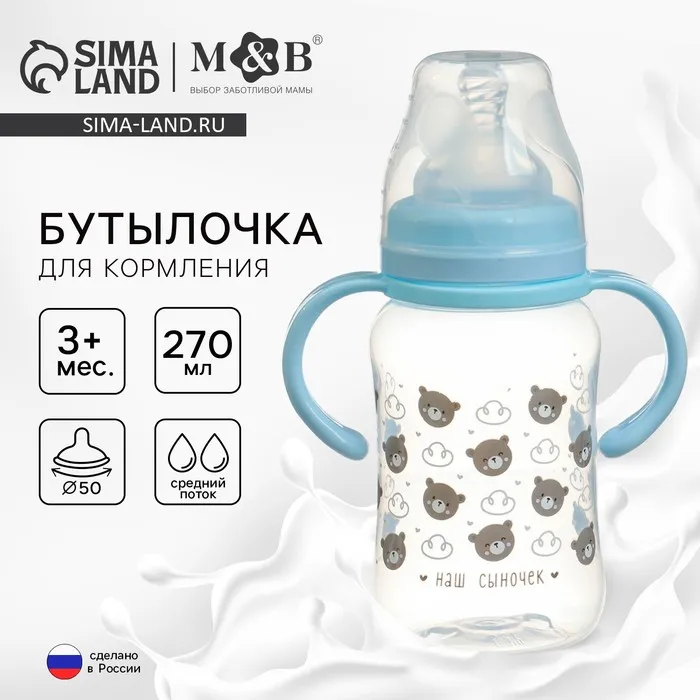 Бутылочка для кормления M&B «Наш сыночек», широкое горло, средний поток, от 3 мес., 270 мл. — Характеристики