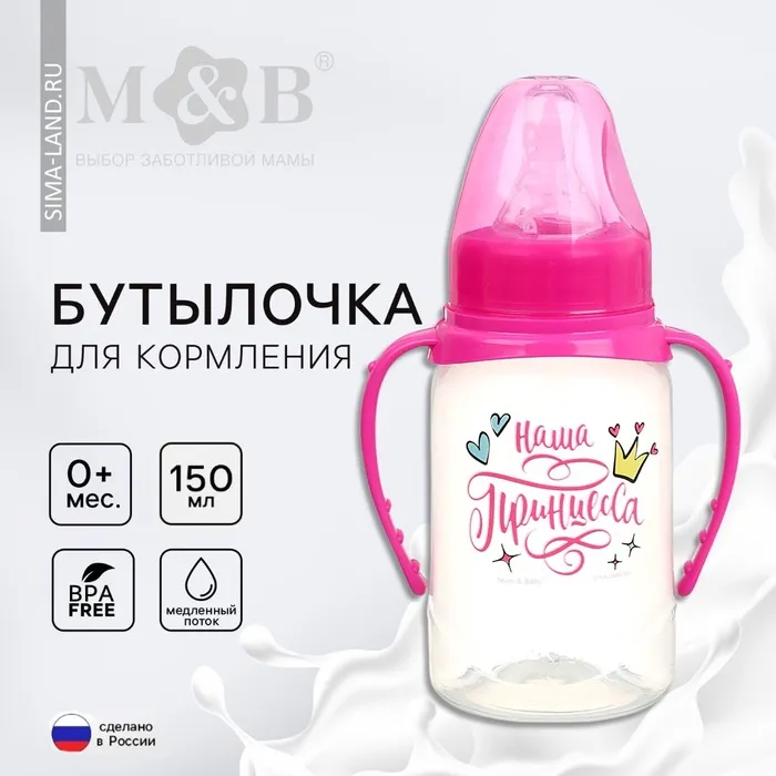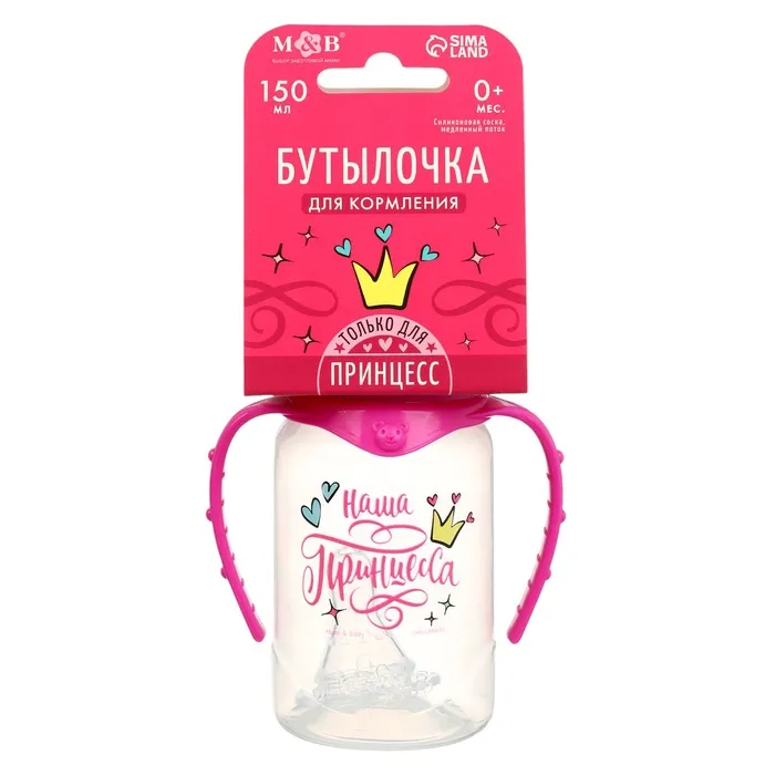 Бутылочка для кормления M&B «Наша принцесса» 150 мл цилиндр, с ручками, розовый — Характеристики