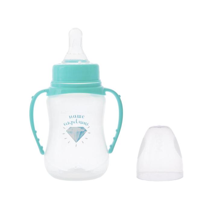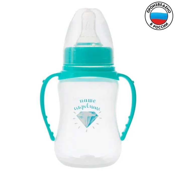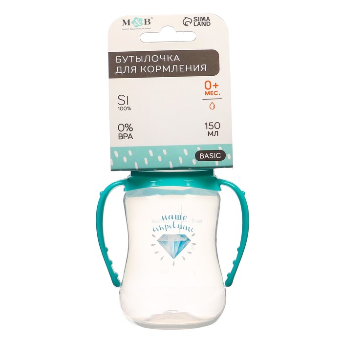 Бутылочка для кормления M&B «Наше сокровище», классическое горло, с ручками, от 0 мес., 150 мл., приталенная, бирюзовый — Характеристики