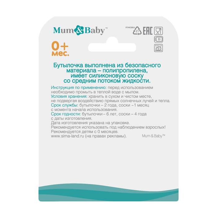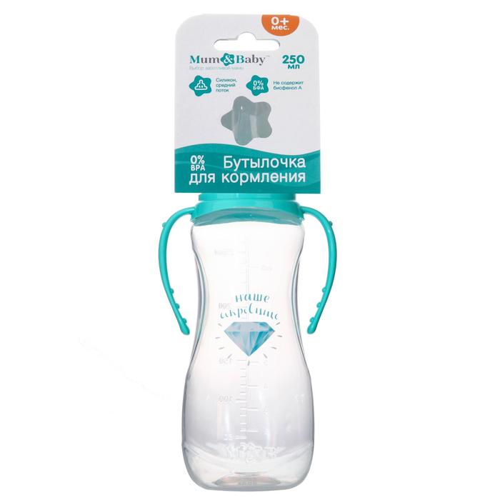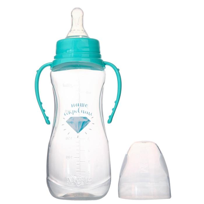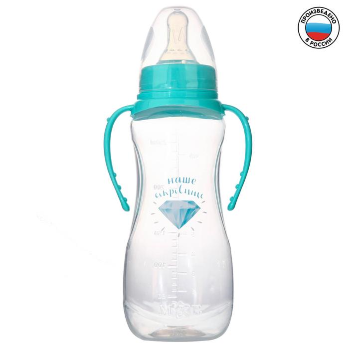 Бутылочка для кормления M&B «Наше сокровище», классическое горло, с ручками, от 0 мес., 250 мл., приталенная, бирюзовый — Характеристики