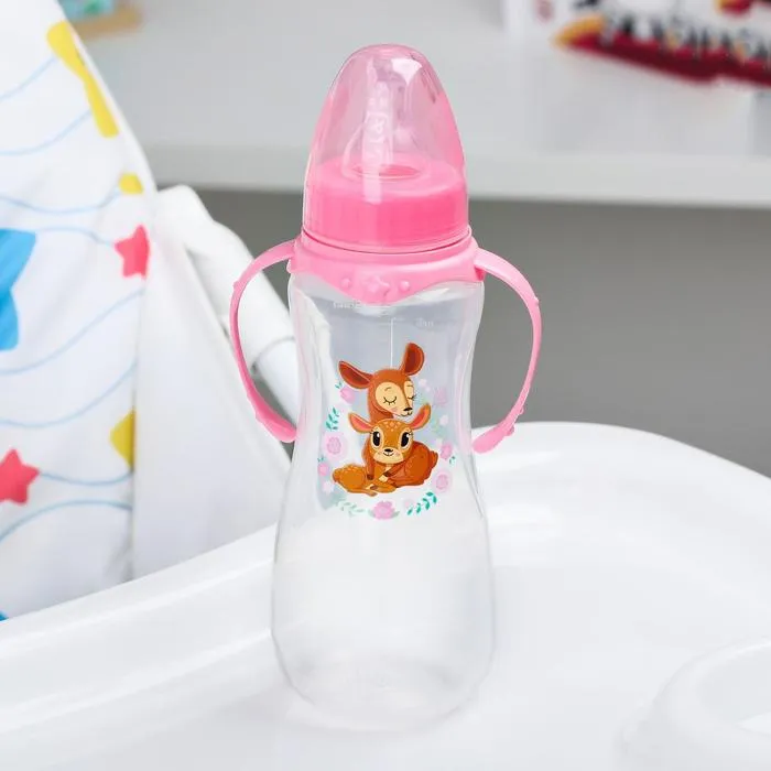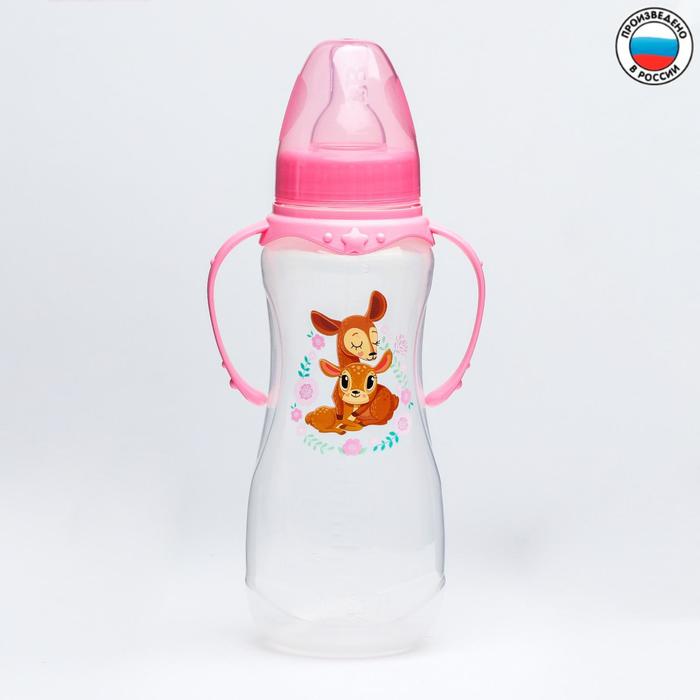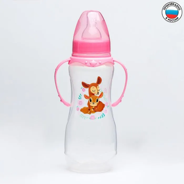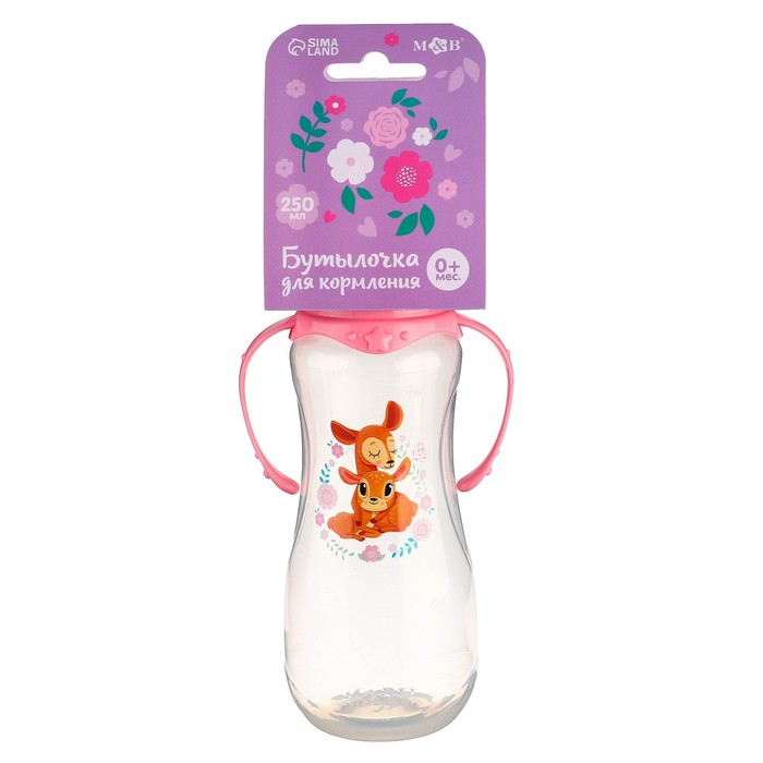 Бутылочка для кормления M&B «Оленята: мамы и малыши», классическое горло, с ручками, от 0 мес., 250 мл., приталенная — Характеристики