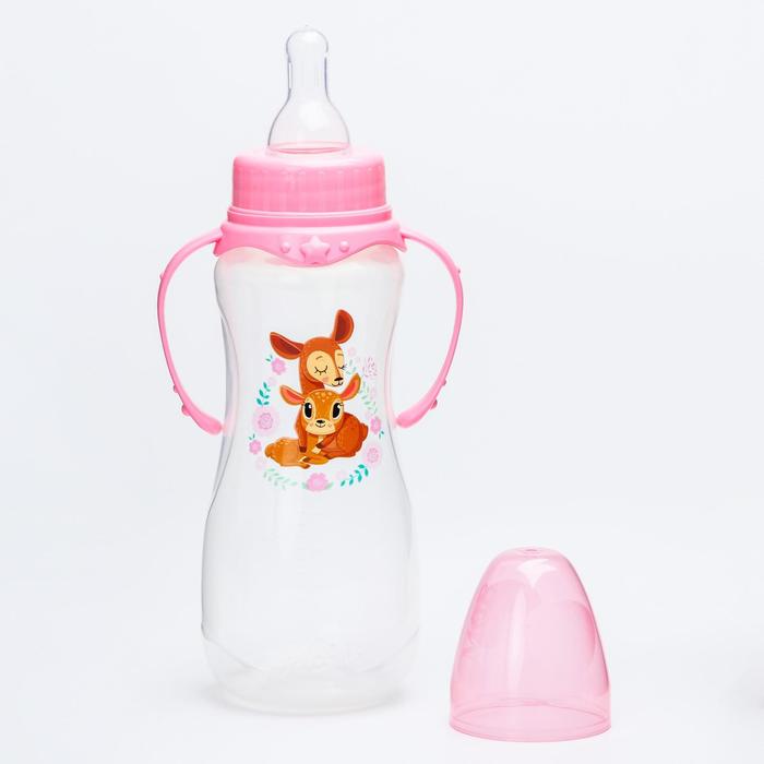 Бутылочка для кормления M&B «Оленята: мамы и малыши», классическое горло, с ручками, от 0 мес., 250 мл., приталенная