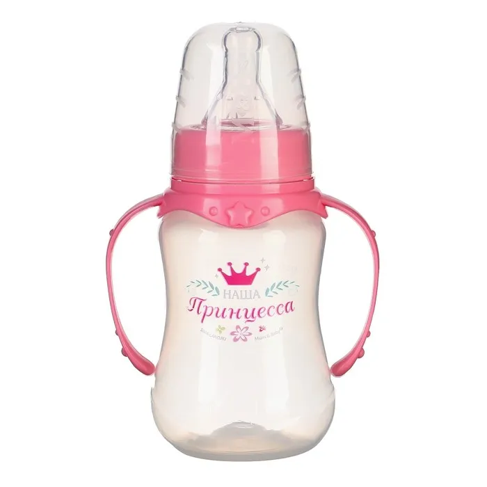 Бутылочка для кормления M&B «Принцесса», классическое горло, приталенная, с ручками, 150 мл., от 0 мес., розовый — Характеристики