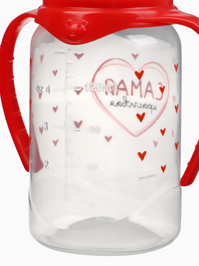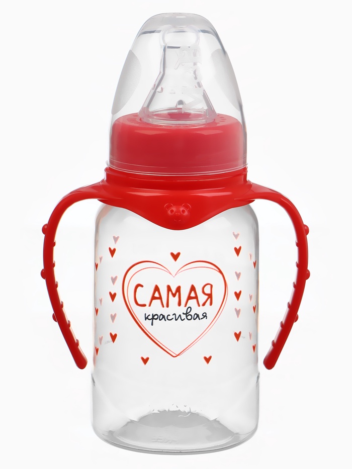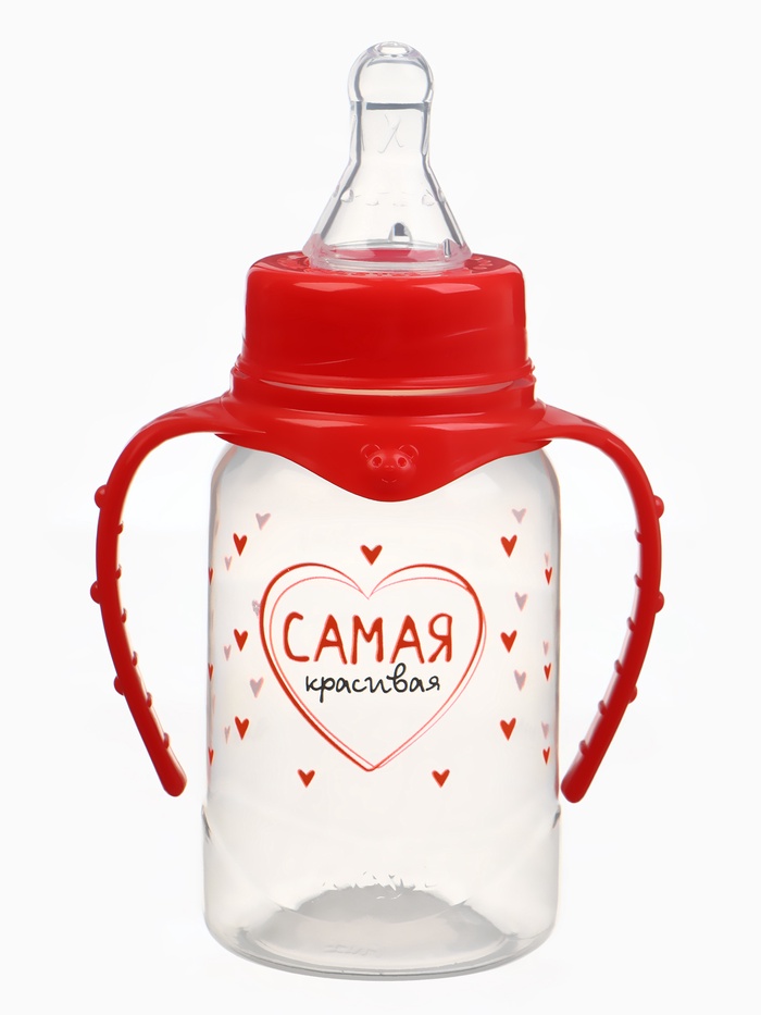 Бутылочка для кормления M&B «Самая красивая», классическое горло, с ручками, от 0 мес., 150 мл., красный — Характеристики