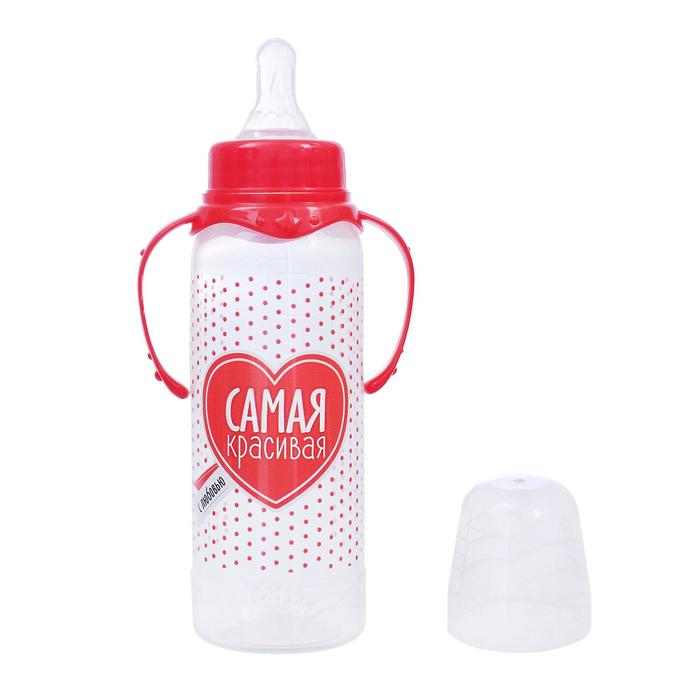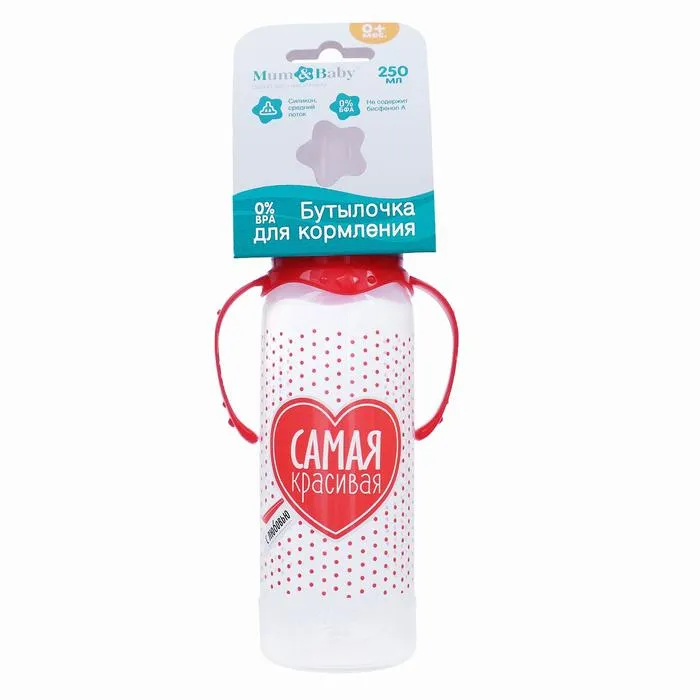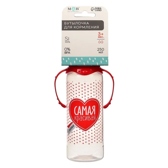 Бутылочка для кормления M&B «Самая красивая», классическое горло, с ручками, от 3 мес., 250 мл., красный — Характеристики
