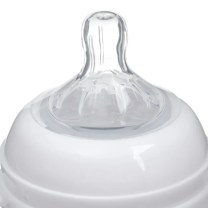 Бутылочка имеет мягкую и гибкую соску, которая не слипнется и будет удобно располагаться у малыша во рту.