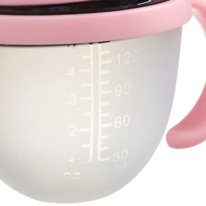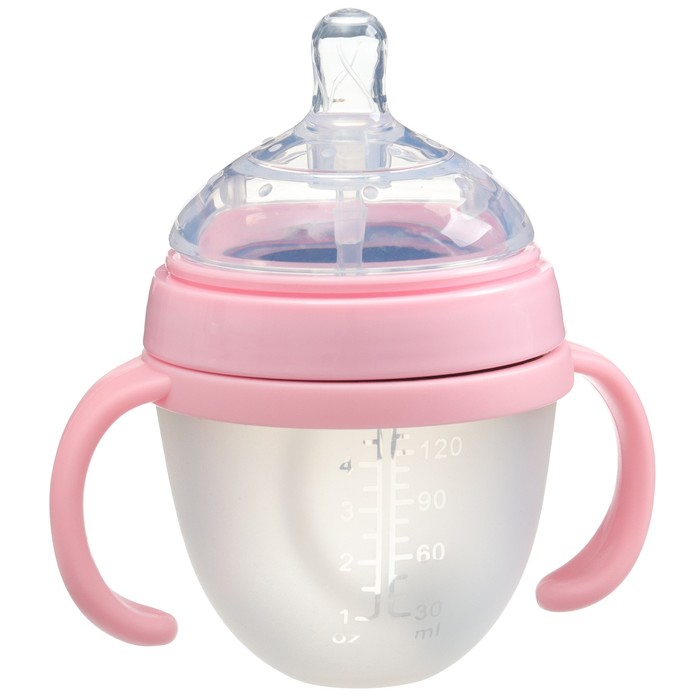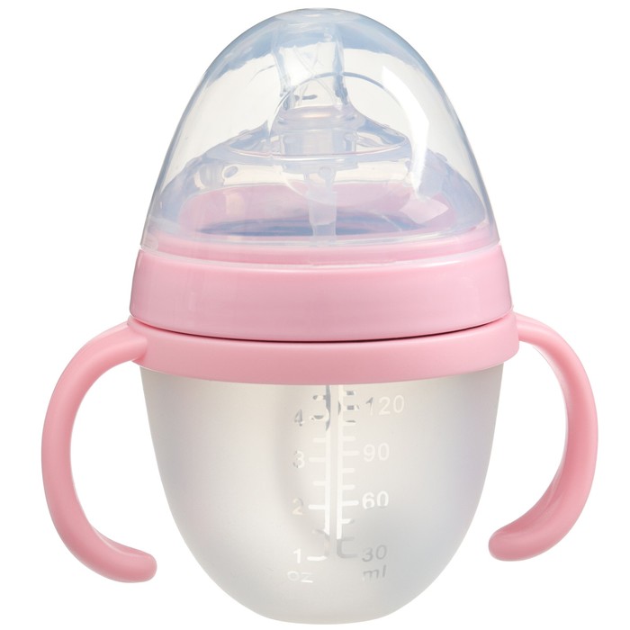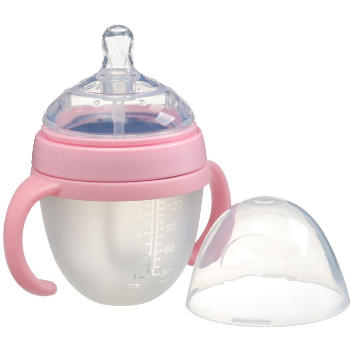 Бутылочка для кормления M&B, широкое горло Ø70 мм, от 3 мес, 150 мл., с ручками, силиконовая колба, розовый — Характеристики