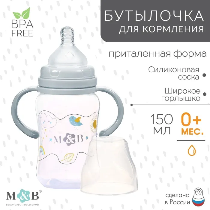Детская бутылочка изготовлена в России из сырья отечественного производства. Все материалы сертифицированы и безопасны для здоровья новорождённых. Полипропилен и силикон не выделяют вредных веществ при стерилизации и контакте с жидкостью.