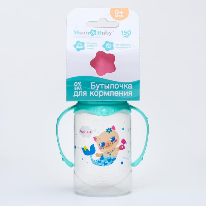 Бутылочка для кормления M&B «ТРЕНД. Которусалка», классическое горло, с ручками, от 3 мес., 150 мл., цилиндр, розовый — Характеристики