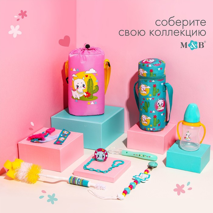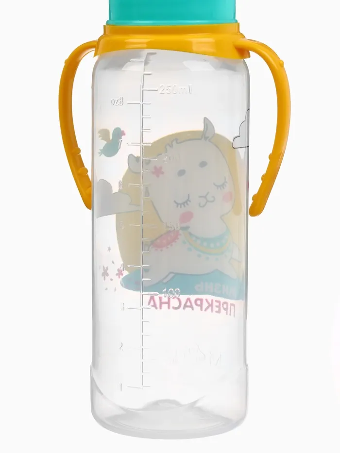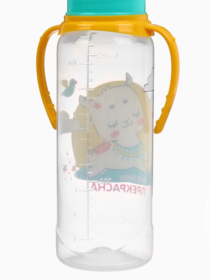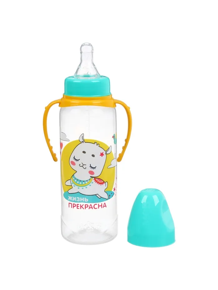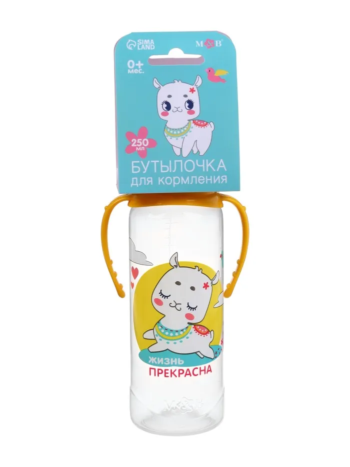 Бутылочка для кормления M&B «ТРЕНД. Лама», классическое горло, с ручками, с 3 мес., 250 мл., цилиндр, бирюзовый — Характеристики
