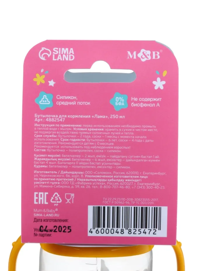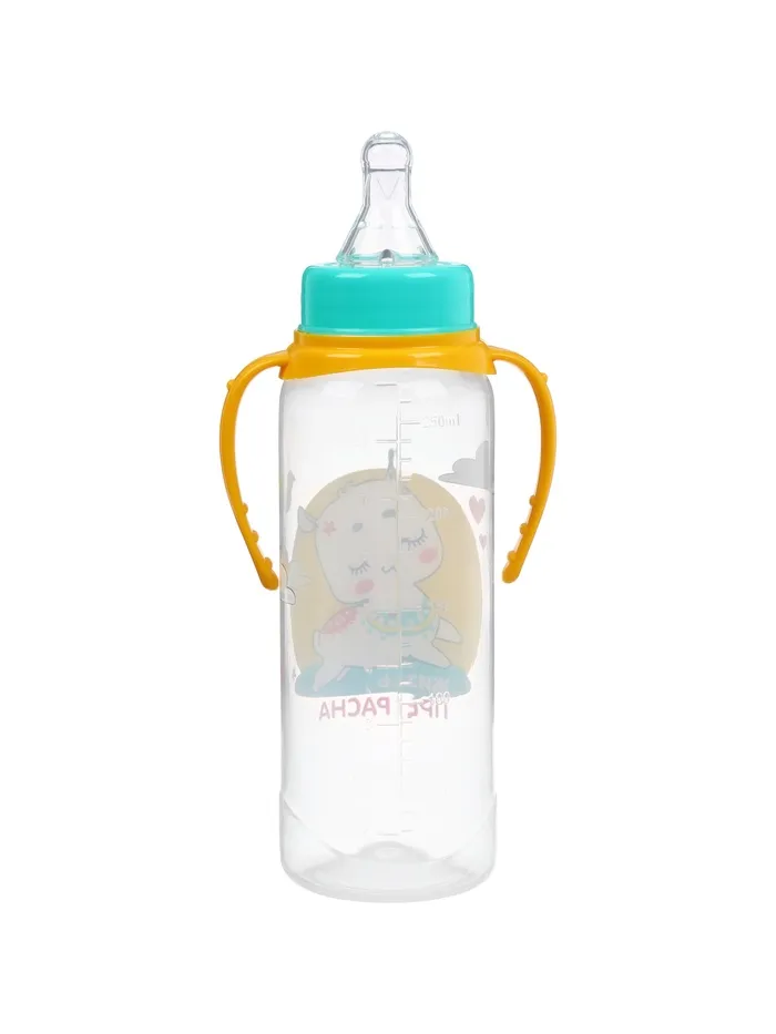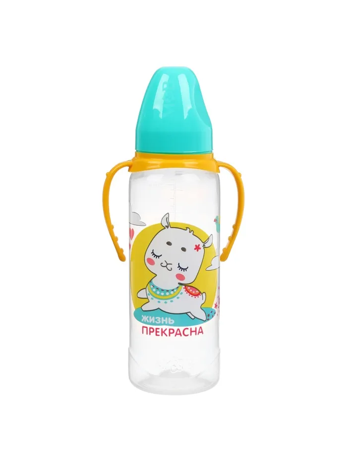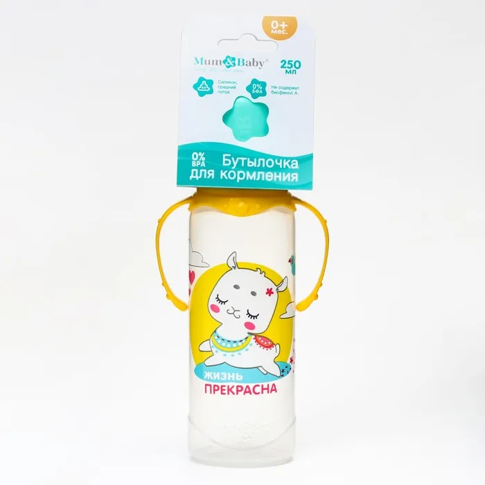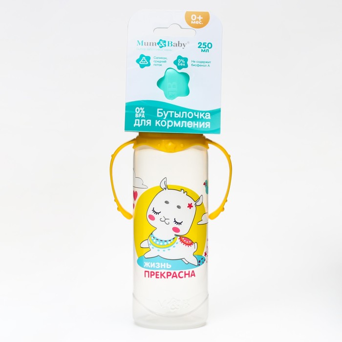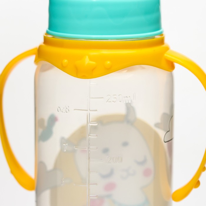Бутылочка для кормления M&B «ТРЕНД. Лама», классическое горло, с ручками, с 3 мес., 250 мл., цилиндр, бирюзовый — Характеристики
